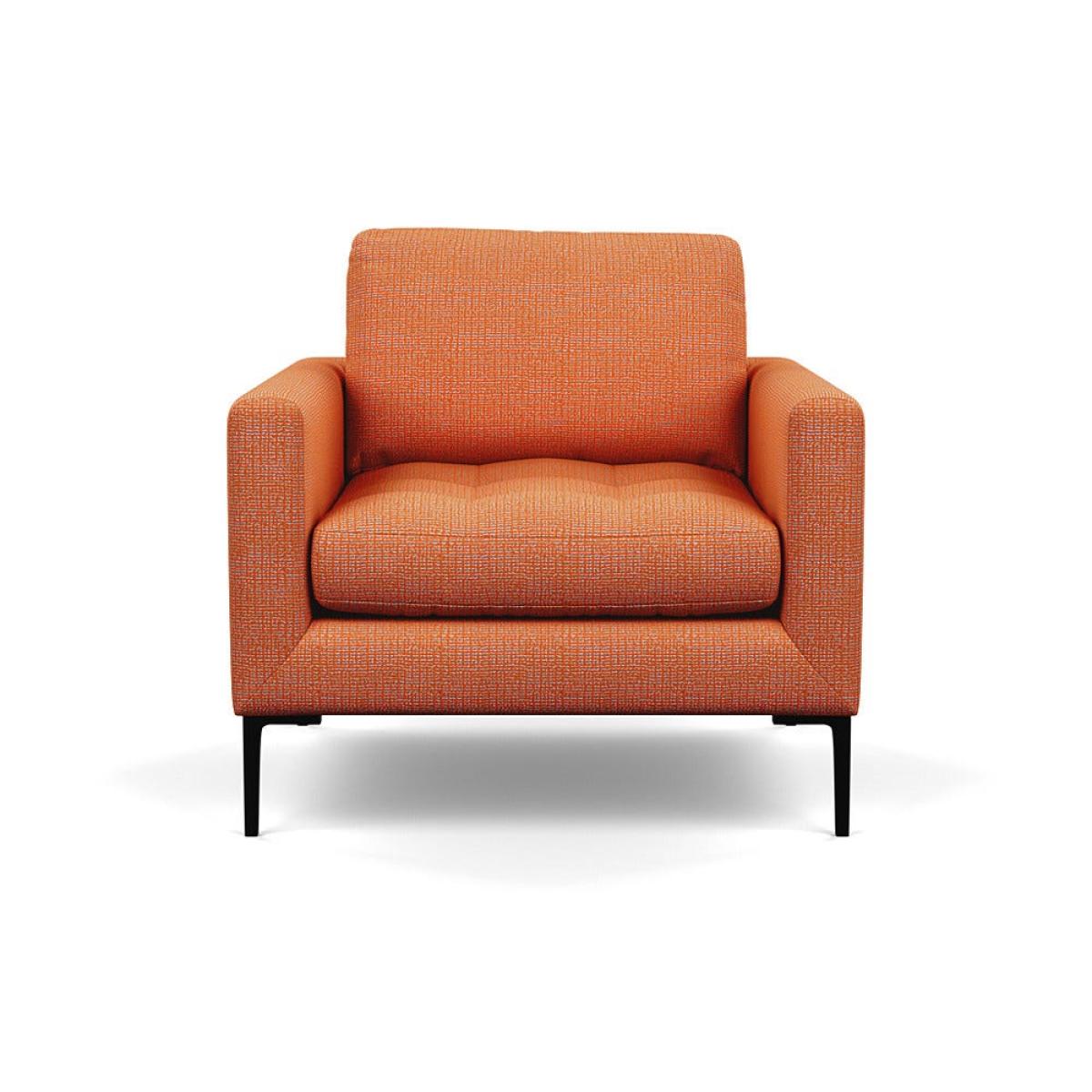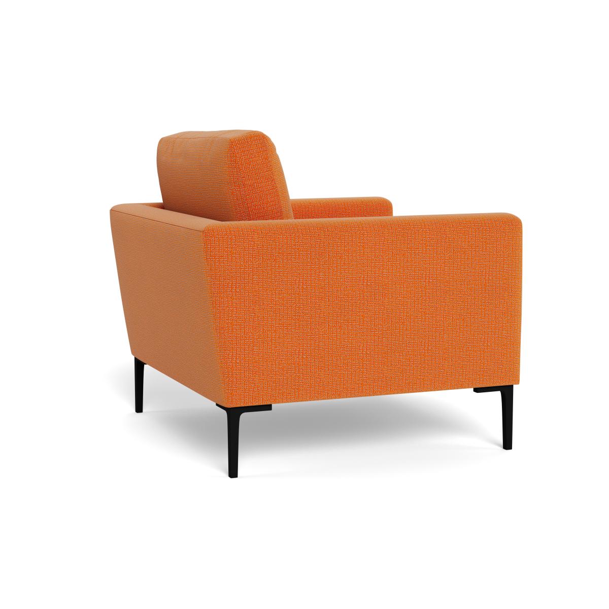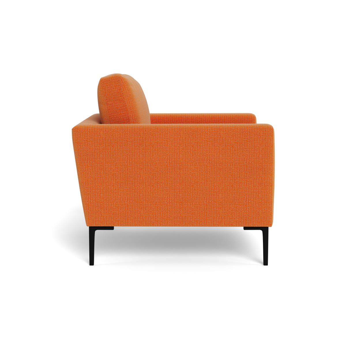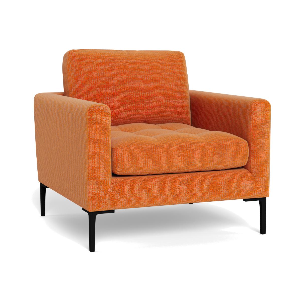 I love this armchair for its vibrant colour and contemporary silhouette, making it a statement piece that's versatile enough to fit in both modern and eclectic interiors. Its compact size makes it ideal for smaller living spaces, reading nooks, or even a cosy corner in a bedroom. Pair it with neutral tones or more muted furnishings to let the bright orange pop, or use it as a colourful accent in a layered, textured scheme. Practical styling tips include adding a tactile cushion or throw to soften the look and grounding it with a patterned rug or side table. The mid-century inspired legs give it a chic edge, without overwhelming the space, making it a practical yet playful addition to your home.