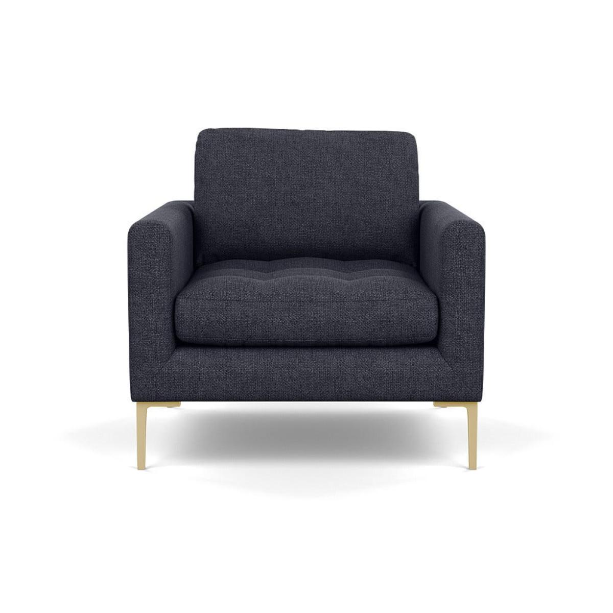 I love this armchair for its sleek, modern silhouette combined with the plush texture of the upholstery, which adds both comfort and style. The rich texture and Soot colour make it a versatile piece that can anchor a variety of interiors, from contemporary to mid-century inspired spaces. The brass feet elevate the look with a subtle touch of sophistication, making it perfect for a living room or sitting room where you want a bold yet refined statement piece. For styling, consider pairing it with neutral-toned cushions or soft throws to soften the look, or complement it with other brass accents for a cohesive aesthetic. It’s equally at home in a minimalist scheme or layered with patterned prints for a cosy, inviting look.