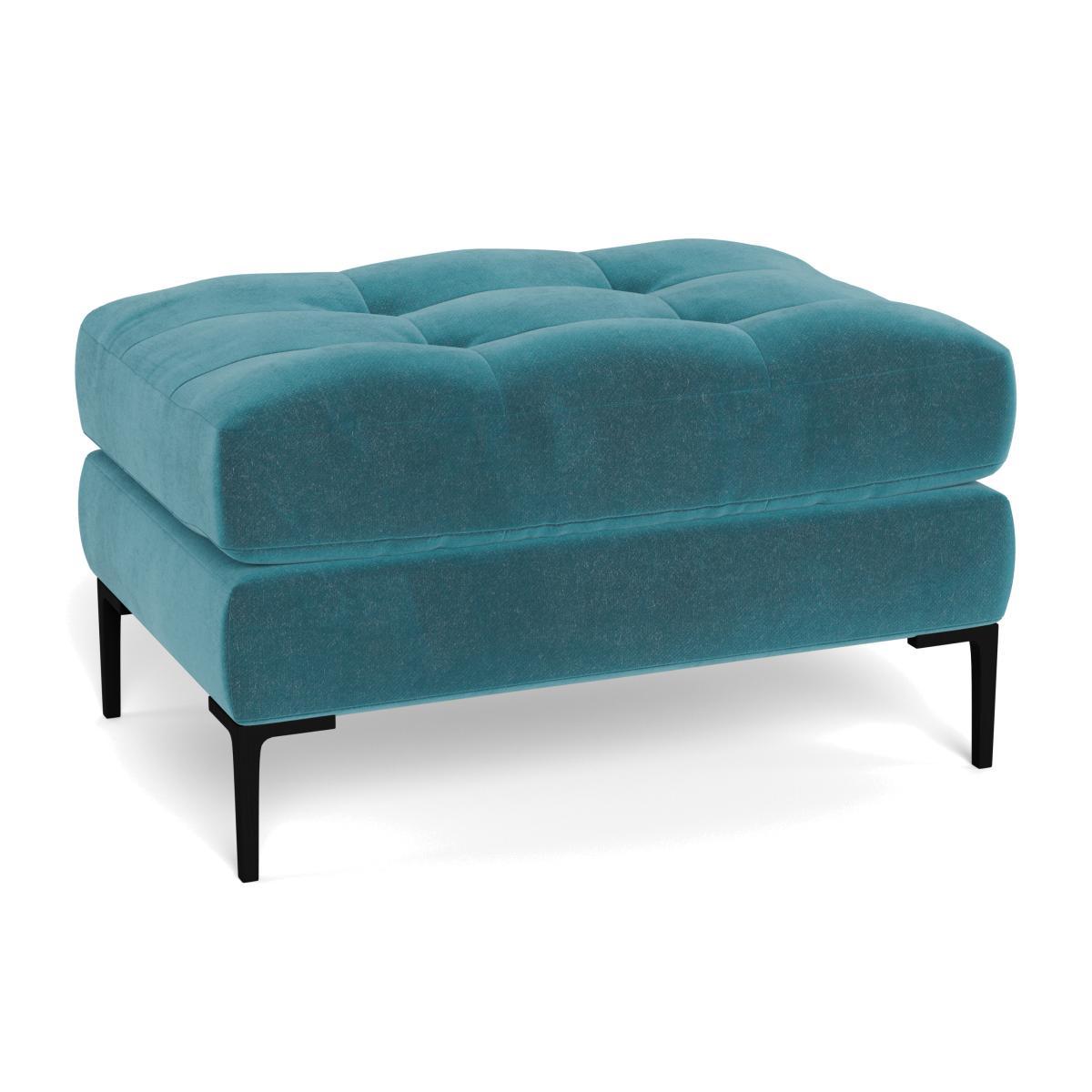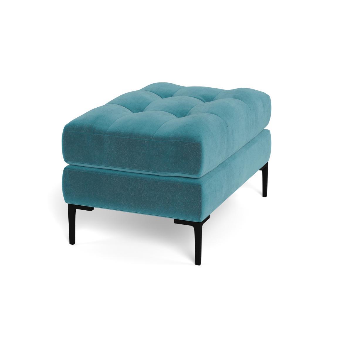 Heal's Eton Footstool Smart Luxe Velvet Airforce Blue Black Feet - Heal's UK Furniture
