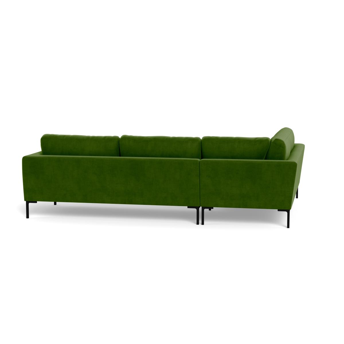 This corner sofa is a stylish choice for adding a touch of luxury to the living room, especially with its lush velvet in a vibrant grass green. I love how the brass feet elevate the overall look, adding a subtle hint of glamour and sophistication. It works particularly well in contemporary or modern interiors, but can also sit comfortably in eclectic or transitional styles when paired with bold accessories or soft textures. For styling tips, consider layering with patterned cushions, metallic accents, or even a textured rug to create a balanced, inviting space. Its left-hand facing configuration makes it ideal for open-plan living areas or rooms where the sofa forms a focal point, providing both comfort and a polished aesthetic.