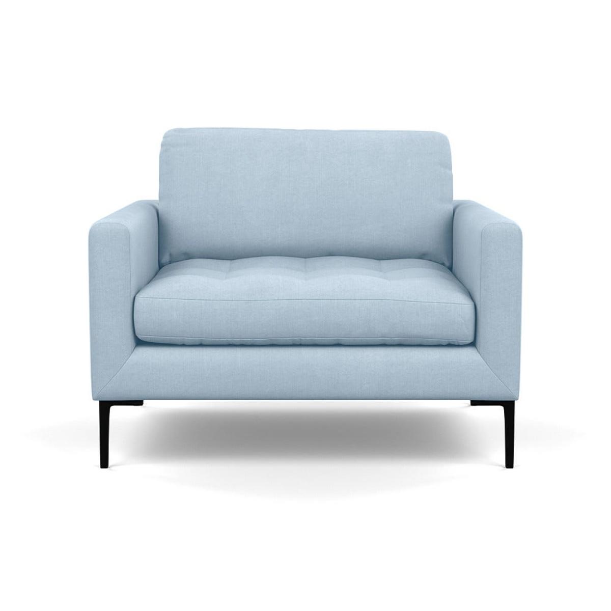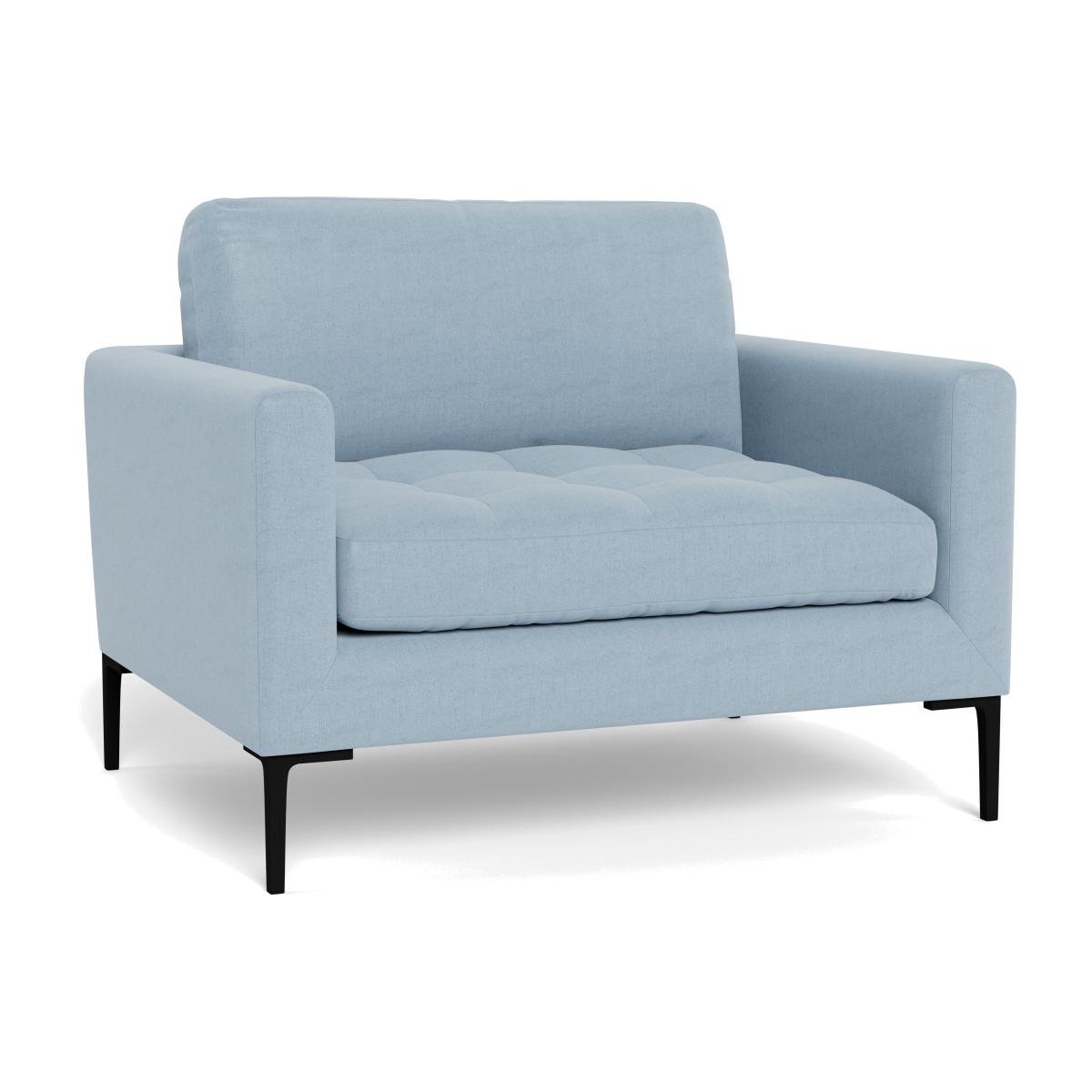 I love the Heal's Eton loveseat for its timeless design and versatile colour. The sea shanty blue fabric adds a calm, nautical touch that works beautifully in coastal, scandinavian, or minimalist interiors. Its clean lines and simple shape make it a great centrepiece or complement other contemporary pieces. Practical styling tips include pairing it with neutral cushions and textured throws for added comfort, or layering with patterned textiles to create a cosy, inviting vibe. The black feet provide a subtle contrast that grounds the piece, making it suitable for both airy open-plan rooms and more cosy, contained spaces. Overall, this loveseat is a practical yet stylish choice that offers both comfort and understated charm.