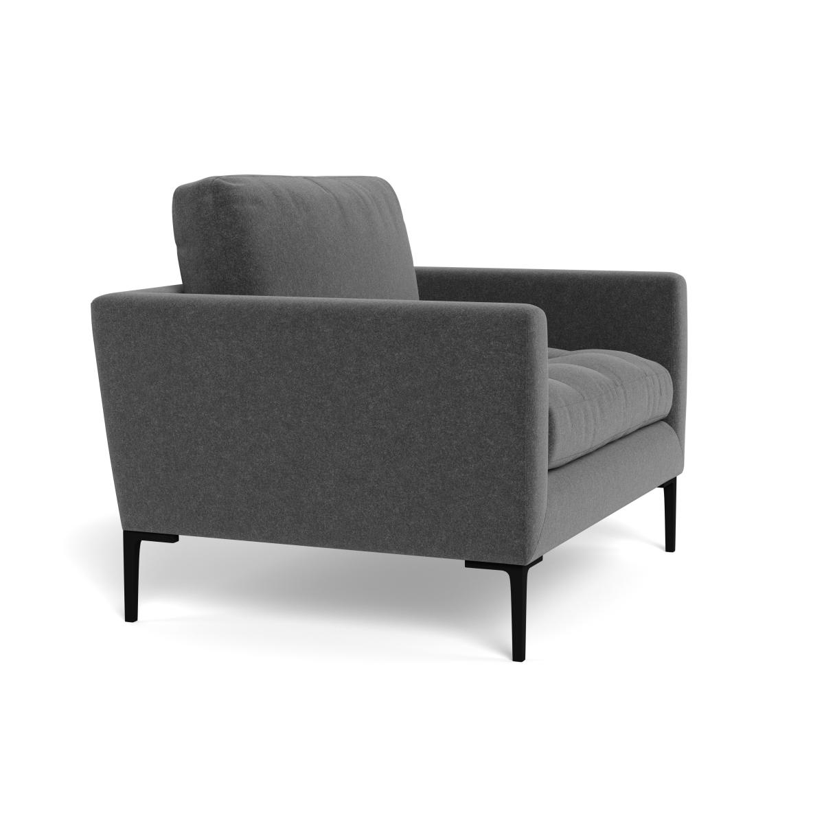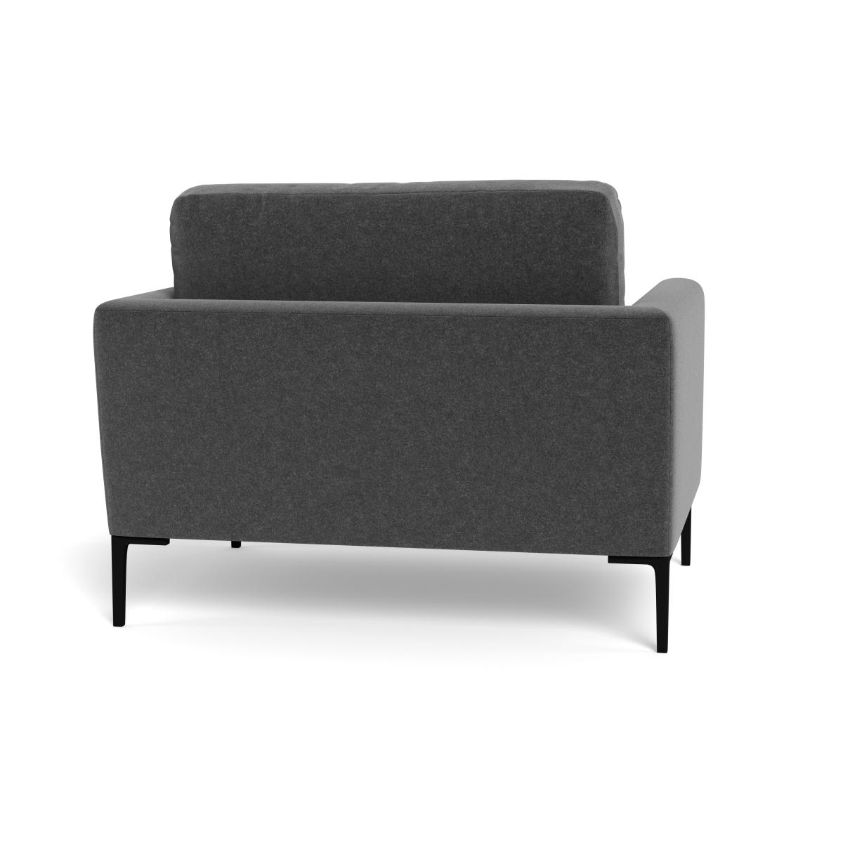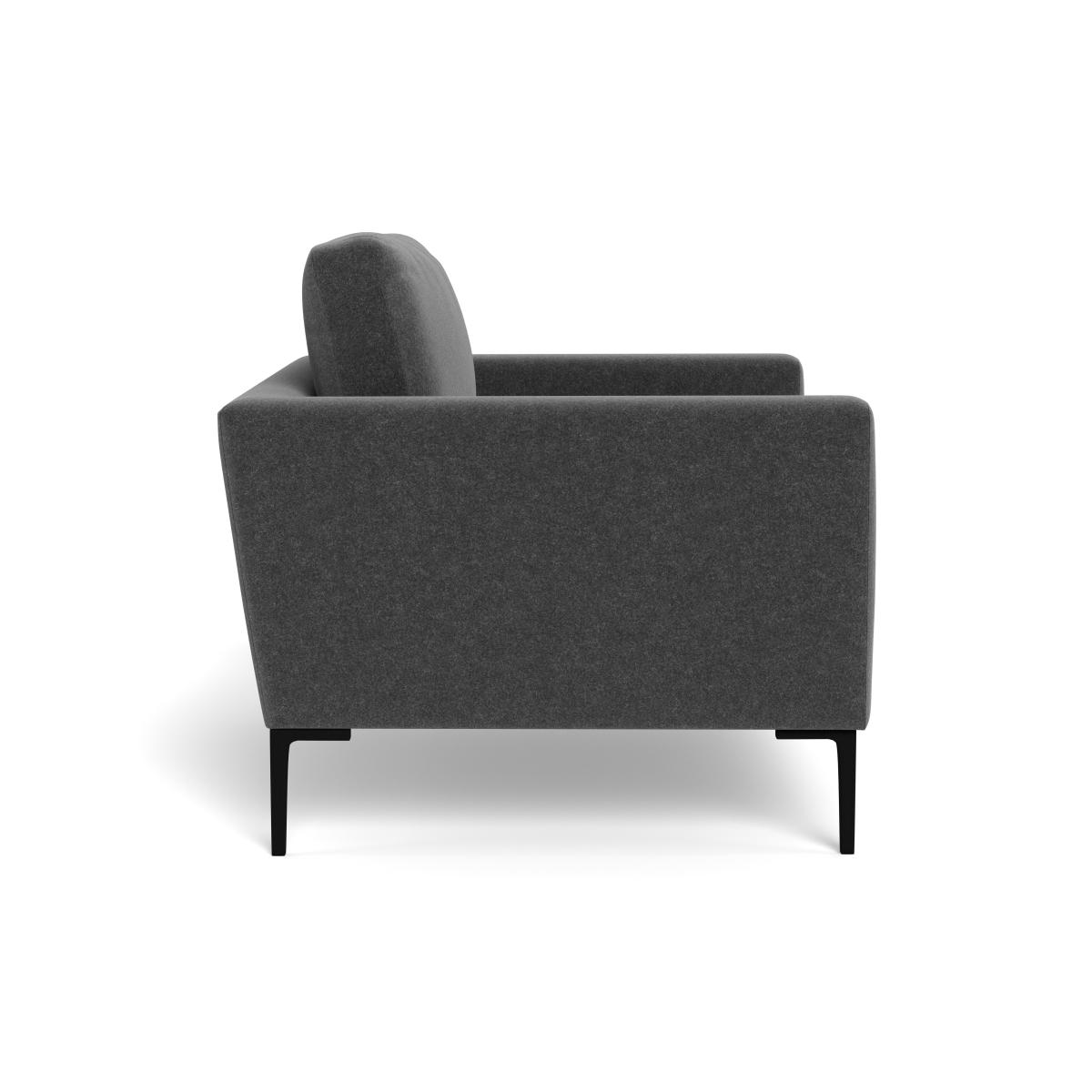 I love this little loveseats' streamlined silhouette and versatile Melton wool upholstery in a sleek granite black shade, making it a great addition to both contemporary and classic interiors. It works particularly well in smaller living spaces or as a stylish accent piece in a larger room. To style it effectively, consider pairing it with neutral-toned cushions or textured throws to add comfort and visual interest. Its clean lines and subtle colour palette also make it adaptable to a range of colour schemes, from monochrome to more colourful, eclectic schemes. Practical styling tips include placing it near a statement art piece or a sleek side table with a lamp for a cosy and inviting corner.