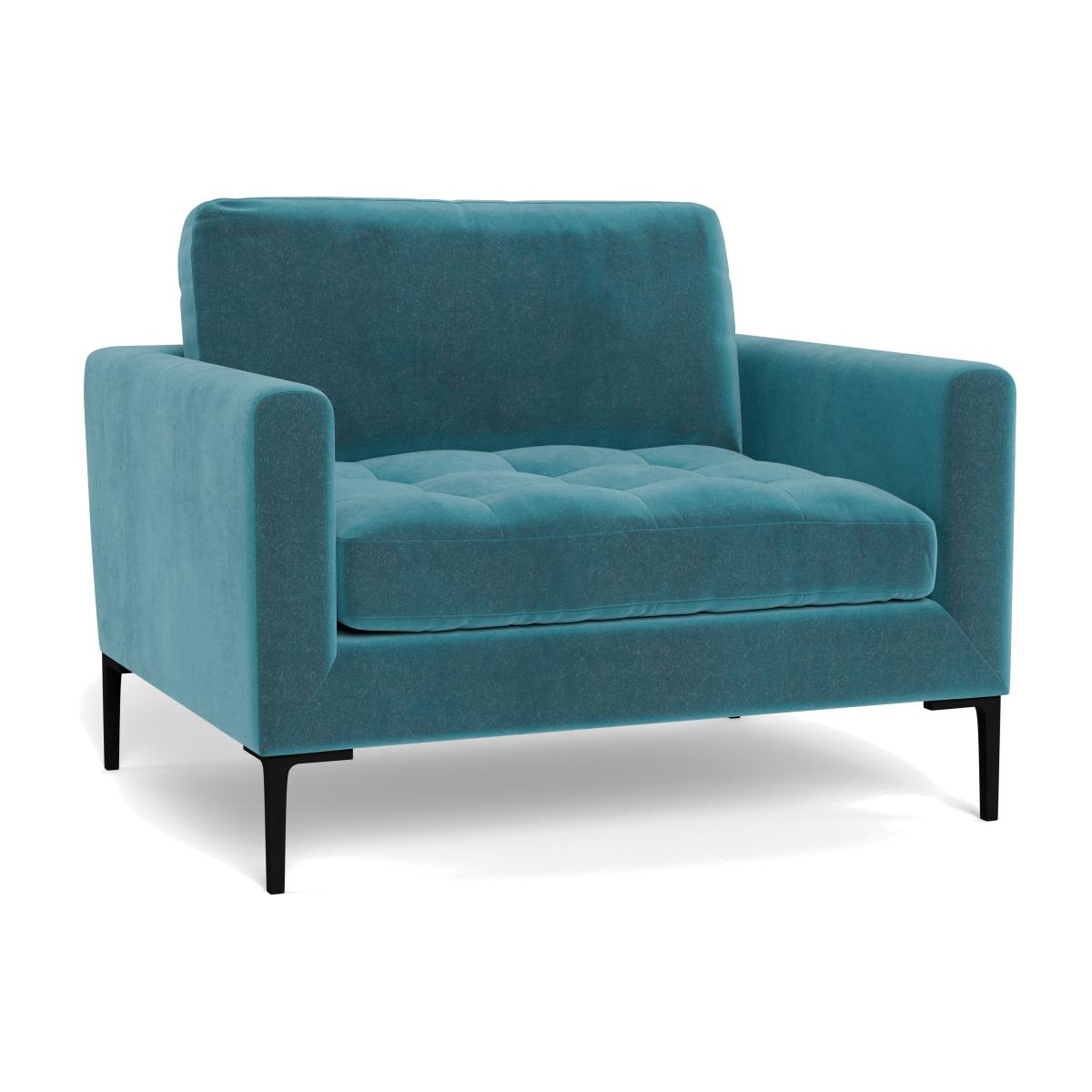 Heal's Eton Loveseat Smart Luxe Velvet Airforce Blue Black Feet
