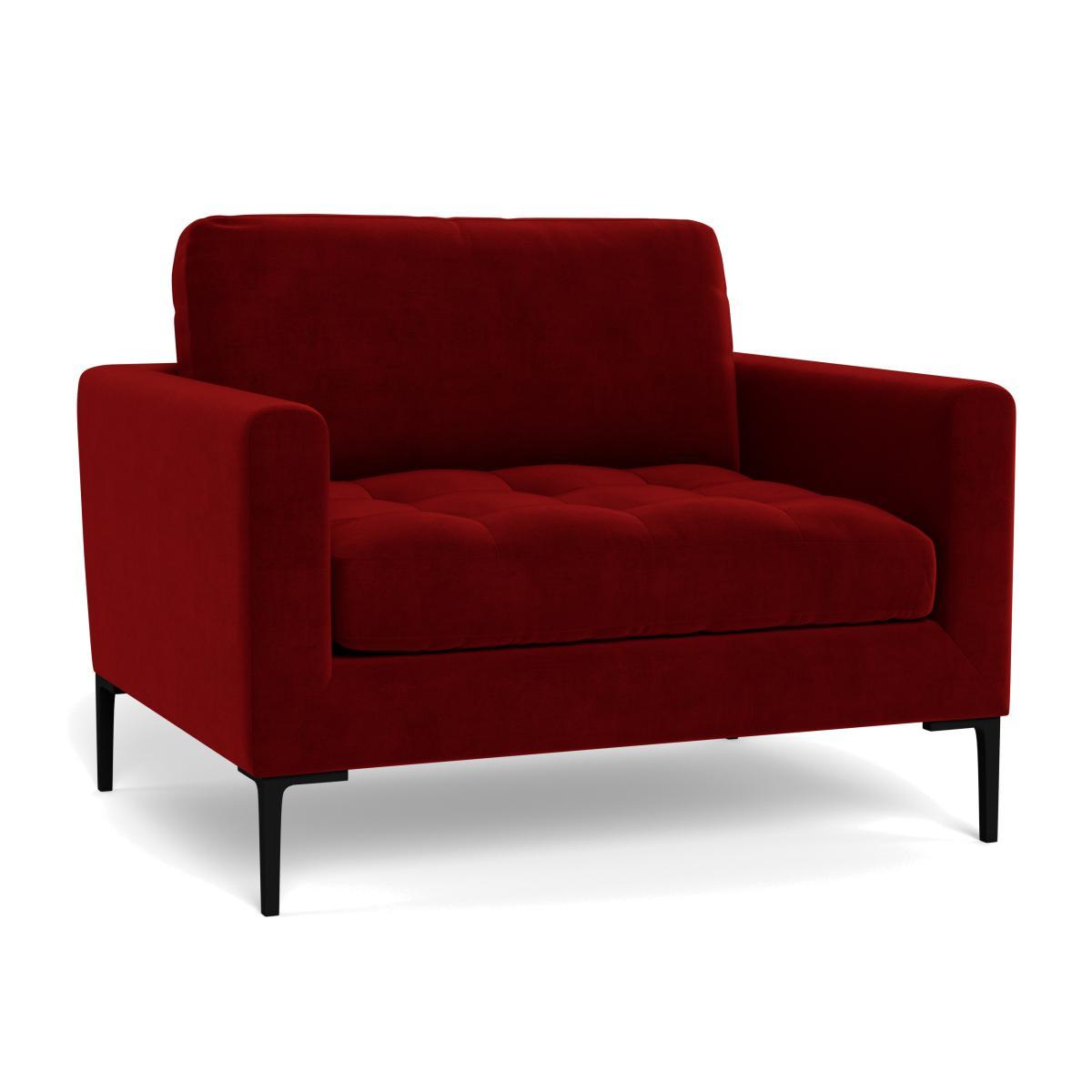 I love this loveseat for its rich mulberry velvet finish and sleek black feet, which give it a modern yet luxurious feel. It works particularly well in contemporary and eclectic interiors, adding a splash of colour and texture to neutral palettes or softening a more minimalist space. Practical styling tips include pairing it with plush cushions and a throw to create a cosy vibe, or using it as a statement piece in a room with other bold accents. Its site-specific size makes it versatile for small living rooms or cosy corners, and the velvet upholstery is both tactile and elegant, elevating the overall look of the space.