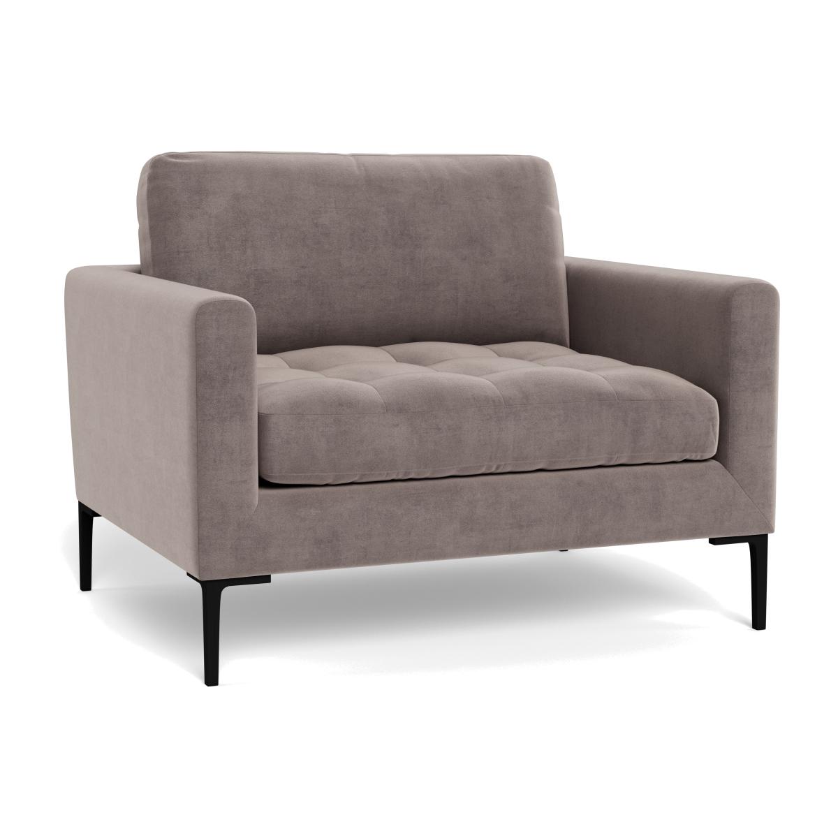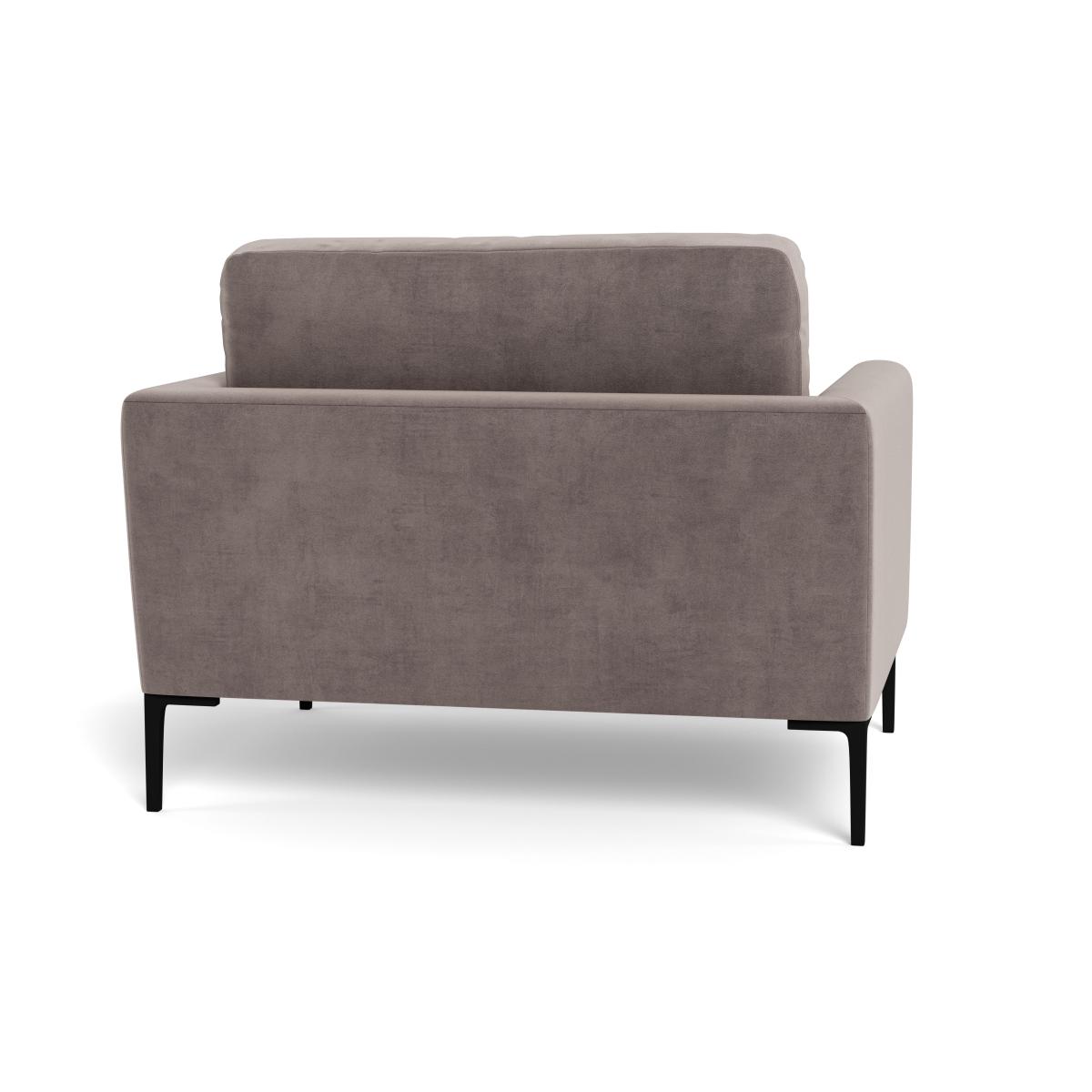 I love this loveseat for its sleek, modern silhouette and its rich mushroom hue, which offers a sophisticated yet versatile look. The smart luxe velvet adds a tactile elegance, making it ideal for contemporary or minimalist interiors, but it can also elevate more classic spaces. It's particularly well-suited for smaller living rooms or alcoves where space is at a premium, offering a cosy yet stylish seating solution. To style it effectively, consider pairing with cushions in contrasting textures or colours, such as warm tones or metallic accents, to add depth. Its black feet give it a grounded feel, making it easy to anchor within various colour schemes, while the velvet finish adds a layer of practicality-resistant yet plush, perfect for everyday use.
