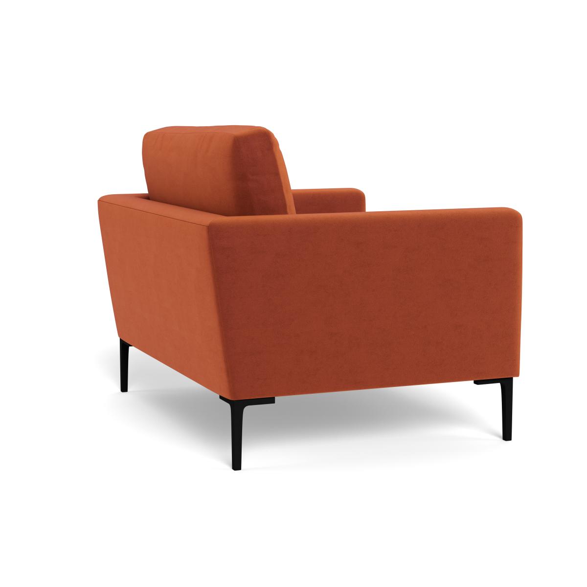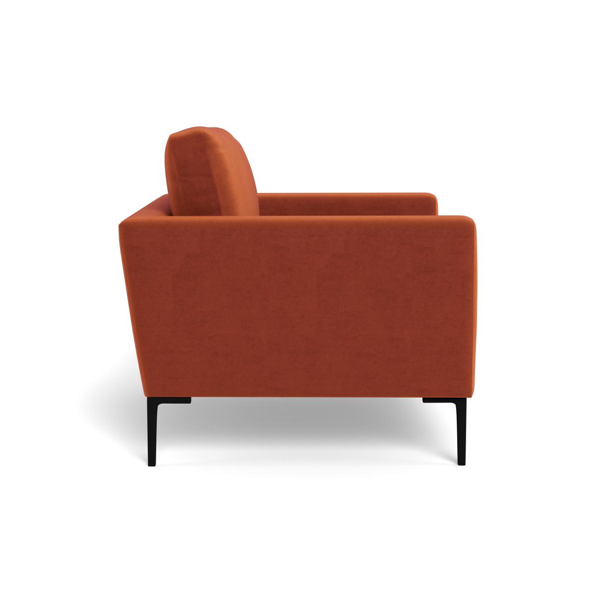 I love this loveseat for its versatile blend of classic form and modern material. The velvety russet finish adds a warm, inviting touch that works beautifully in both contemporary and vintage-inspired interiors. Its sleek black feet give it a subtle edge, allowing it to sit comfortably in diverse colour schemes-from neutral tones to richer, deeper palettes. Practical styling tips include pairing it with textured cushions or throws to add layers of colour and comfort, while its compact size makes it ideal for smaller living rooms or cosy nooks. Using it as a statement piece or as part of a larger seating arrangement can really help define your space without overwhelming it.