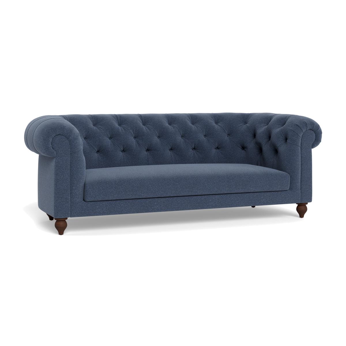 Perfectly capturing this season’s Deco Moderne theme, the new Fitzrovia sofa is a contemporary take on the traditional Chesterfield design. Featuring wide scrolled arms and a deep buttoned back, this luxurious sofa has been meticulously designed to deliver a strong silhouette from any angle whilst still being compact enough for smaller homes. Whilst generous in seating, Fitzrovia features a combination of neat proportions, comfortable sit and solid turned wooden legs available in black, natural and chestnut. Designed exclusively for Heal’s and made in the UK, the Fitzrovia is available in a wide selection of Heal’s fabrics as well as this rich Designers Guild Mulberry Varese Velvet as shown.