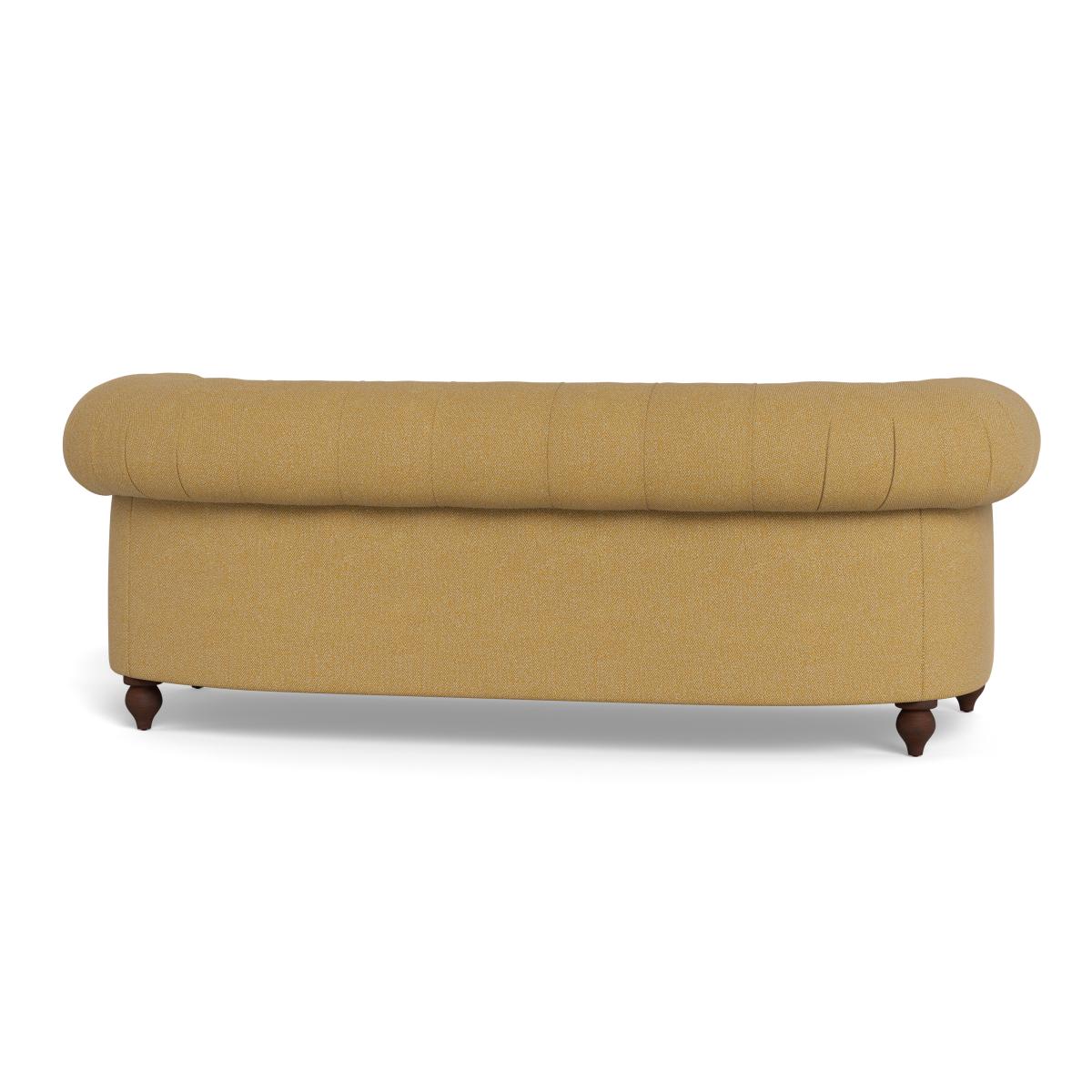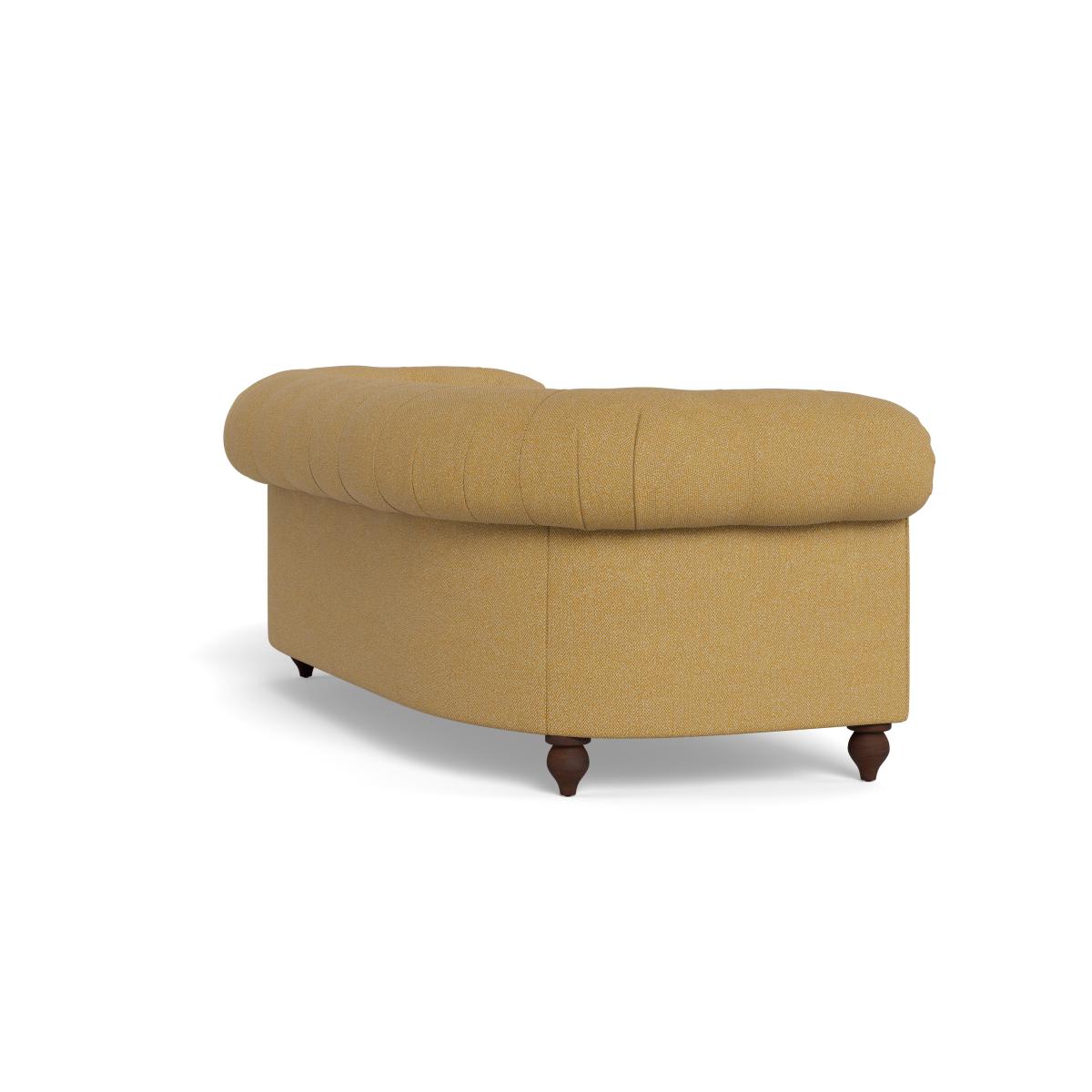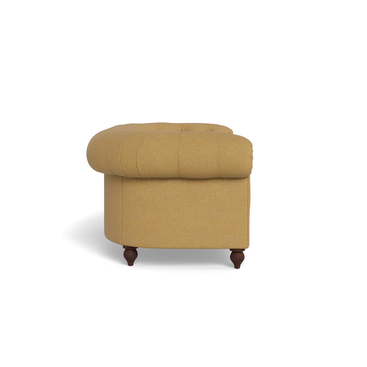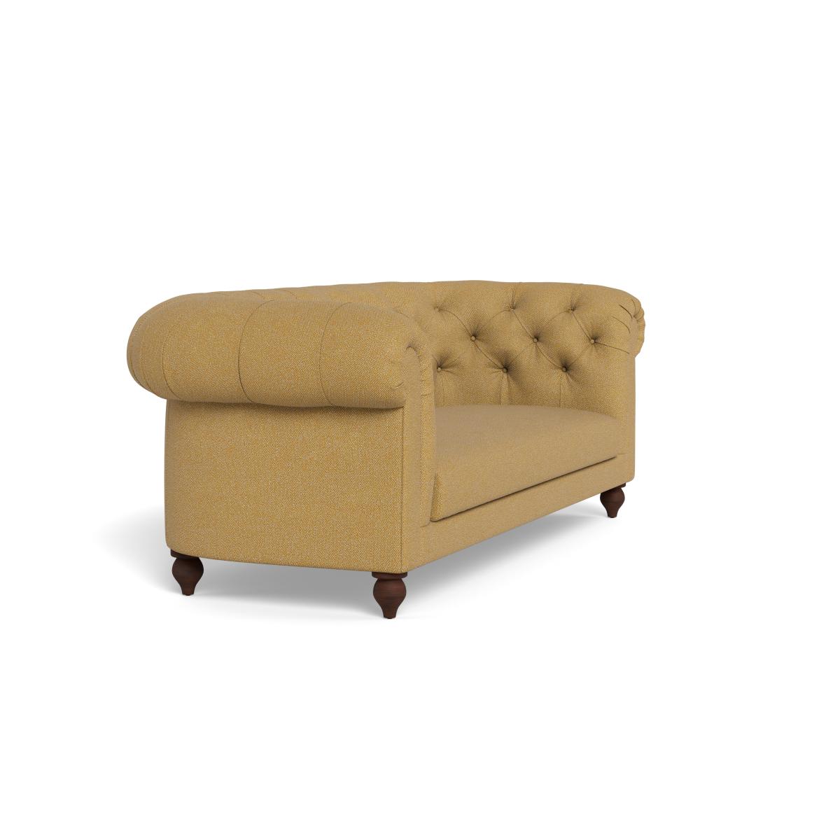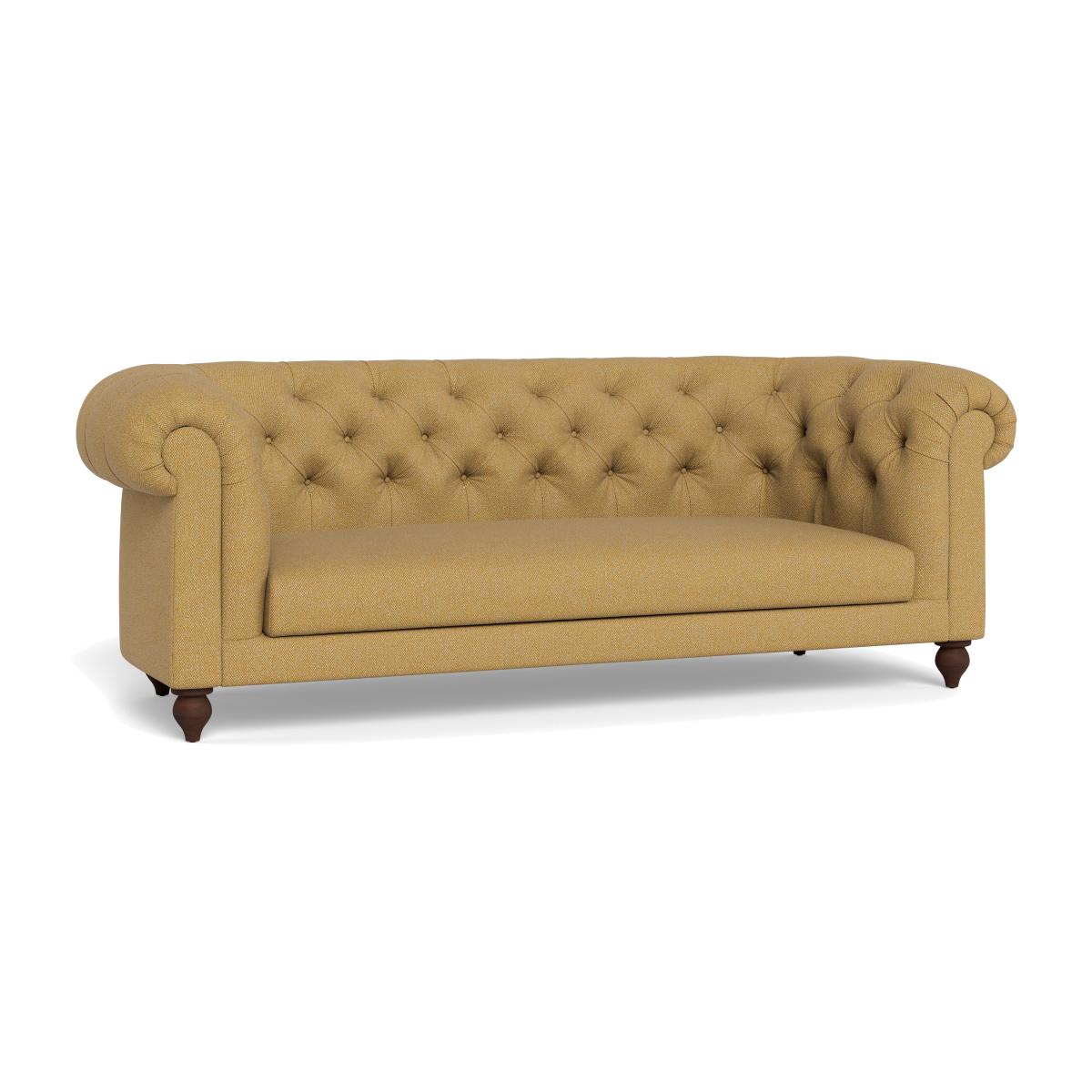 I love this sofa for its classic Chesterfield style with a modern twist thanks to the boucle tweed fabric in a vibrant citrine shade. It works particularly well in eclectic, contemporary, or vintage-inspired interiors, adding a splash of colour and texture that can serve as a statement piece. Practical styling tips include pairing it with neutral or muted tones to let the bright fabric shine, or layering with patterned cushions and throws for a cosy, inviting look. Its black feet give it grounding presence, making it suitable in both open-plan living areas and more intimate spaces. Overall, it’s a versatile piece that balances elegance with comfort, making it a stylish centrepiece for various interior styles.