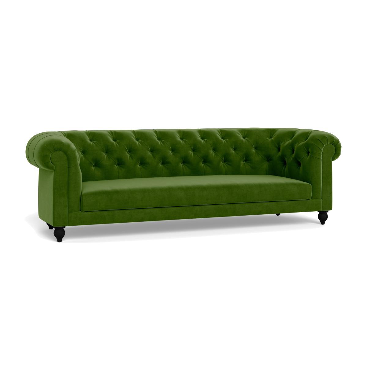 Perfectly capturing this season’s Deco Moderne theme, the new Fitzrovia sofa is a contemporary take on the traditional Chesterfield design. Featuring wide scrolled arms and a deep buttoned back, this luxurious sofa has been meticulously designed to deliver a strong silhouette from any angle whilst still being compact enough for smaller homes. Whilst generous in seating, Fitzrovia features a combination of neat proportions, comfortable sit and solid turned wooden legs available in black, natural and chestnut. Designed exclusively for Heal’s and made in the UK, the Fitzrovia is available in a wide selection of Heal’s fabrics as well as this rich Designers Guild Mulberry Varese Velvet as shown.