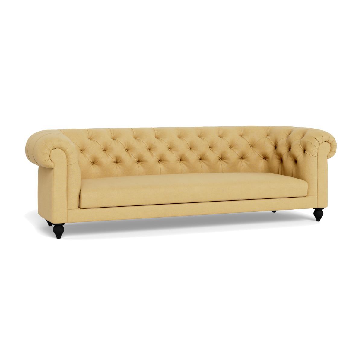 Perfectly capturing this season’s Deco Moderne theme, the new Fitzrovia sofa is a contemporary take on the traditional Chesterfield design. Featuring wide scrolled arms and a deep buttoned back, this luxurious sofa has been meticulously designed to deliver a strong silhouette from any angle whilst still being compact enough for smaller homes. Whilst generous in seating, Fitzrovia features a combination of neat proportions, comfortable sit and solid turned wooden legs available in black, natural and chestnut. Designed exclusively for Heal’s and made in the UK, the Fitzrovia is available in a wide selection of Heal’s fabrics as well as this rich Designers Guild Mulberry Varese Velvet as shown.