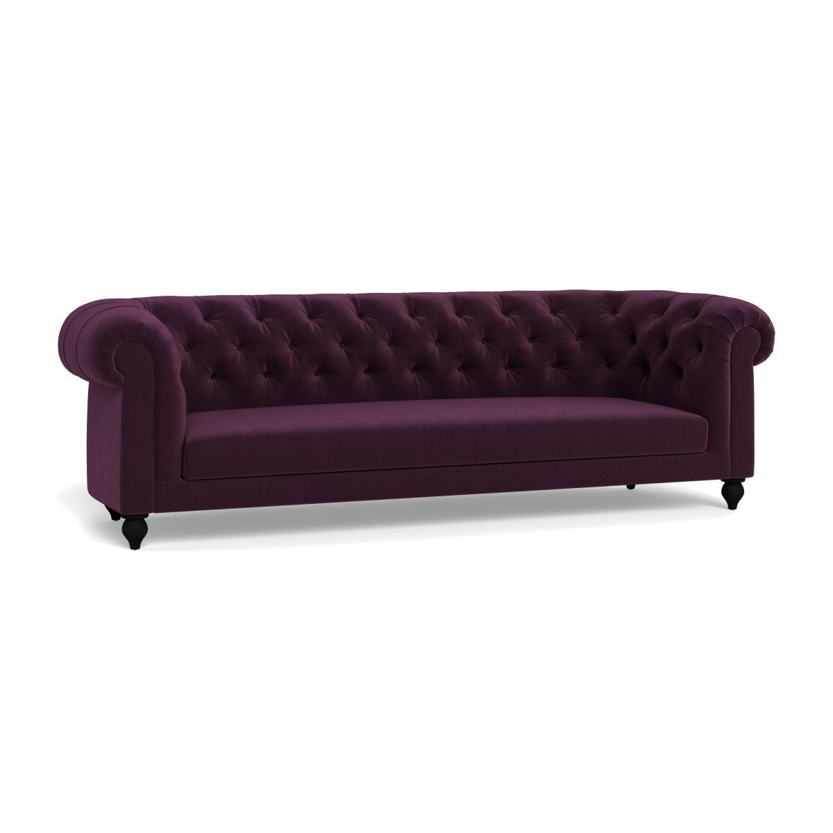 Perfectly capturing this season’s Deco Moderne theme, the new Fitzrovia sofa is a contemporary take on the traditional Chesterfield design. Featuring wide scrolled arms and a deep buttoned back, this luxurious sofa has been meticulously designed to deliver a strong silhouette from any angle whilst still being compact enough for smaller homes. Whilst generous in seating, Fitzrovia features a combination of neat proportions, comfortable sit and solid turned wooden legs available in black, natural and chestnut. Designed exclusively for Heal’s and made in the UK, the Fitzrovia is available in a wide selection of Heal’s fabrics as well as this rich Designers Guild Mulberry Varese Velvet as shown.