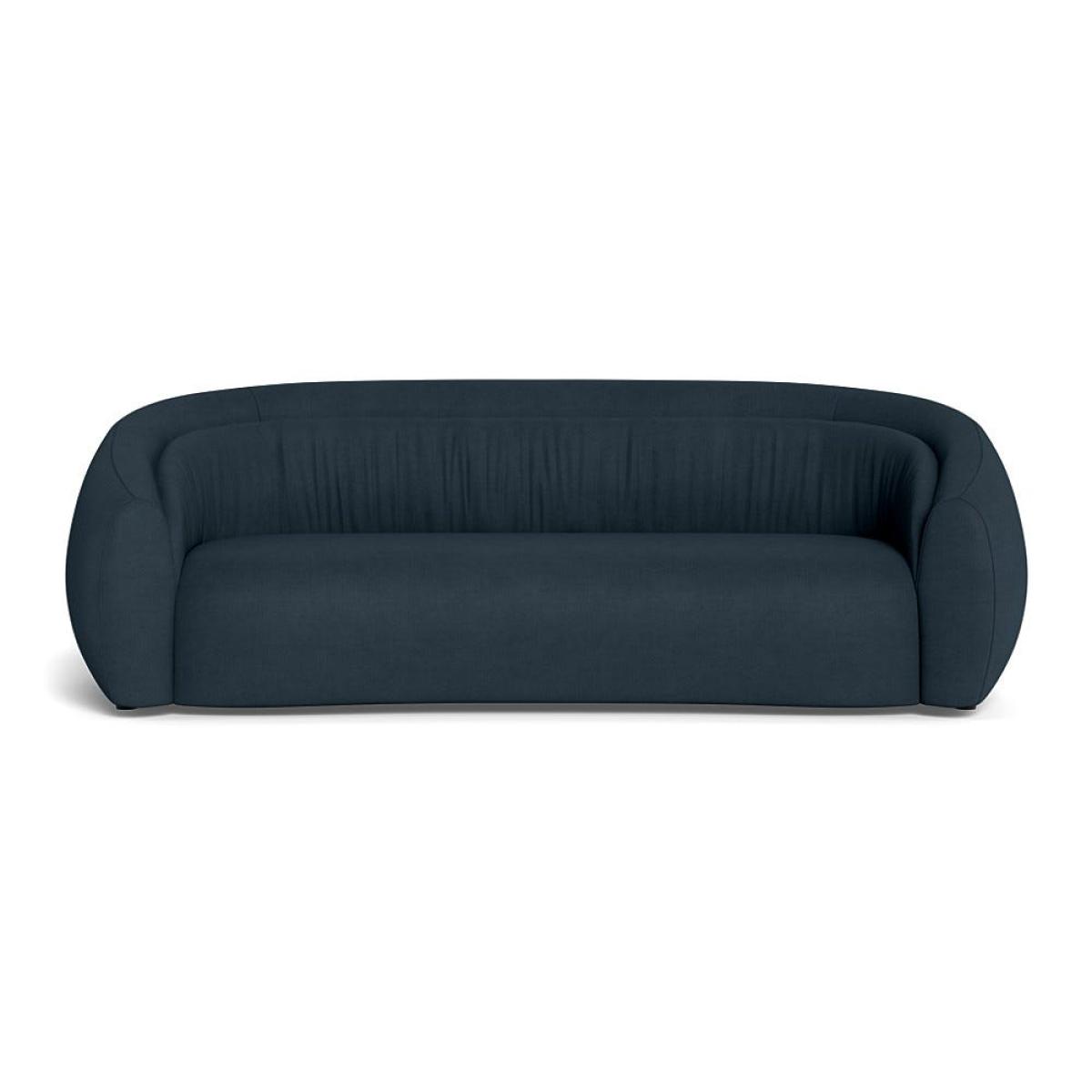 I love this sofa for its striking deep sea colour, which adds a sophisticated yet versatile focal point to a variety of interiors. Its rounded, contemporary shape makes it perfect for both modern and transitional spaces, and the cotton fabric offers a soft, inviting texture. It works well in open-plan living areas or cosy corners, especially when styled with neutral or muted tones to let the colour pop. Practical styling tips include pairing it with textured cushions or a patterned throw to add interest, and placing it alongside warm woods or metallic accents for a balanced, stylish look. Its clean lines and deep hue make it a great investment piece that combines comfort with timeless appeal.