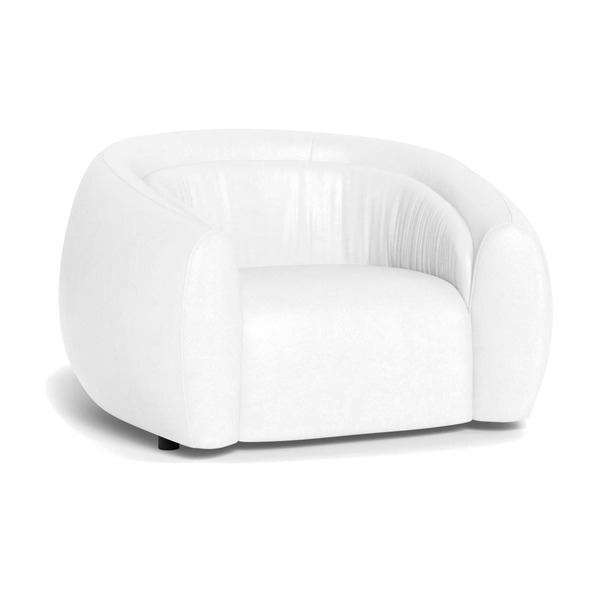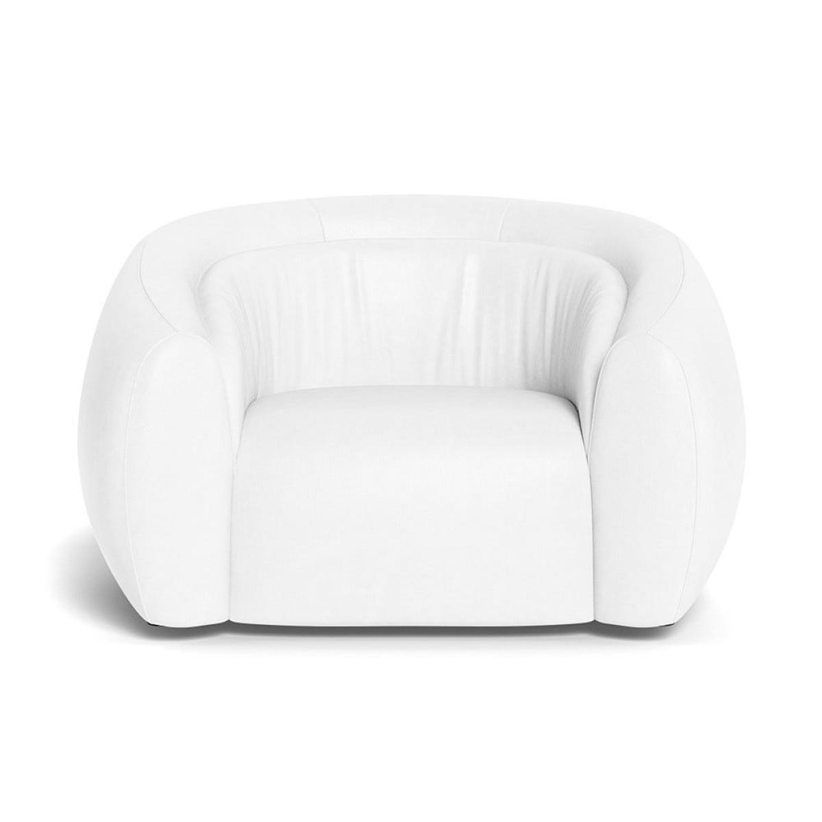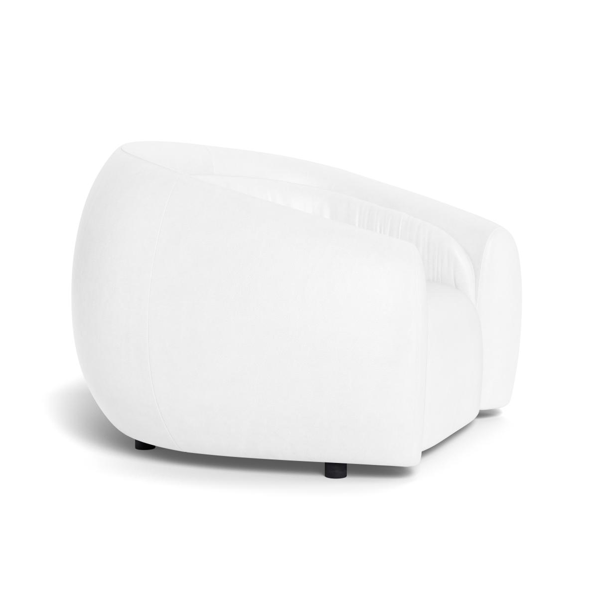 I love this loveseat for its clean lines and versatile white leather finish, making it a great statement piece that can suit both modern and classic interiors. Its rounded, compact form lends itself well to cosy corners or as part of a contemporary living room layout. Practically, the white leather is easy to maintain, adding a fresh, crisp look, but I’d recommend pairing it with textured cushions or throws in softer fabrics to add comfort and visual interest. It works particularly well in minimalist, Scandinavian, or even luxe interiors, where its sleek aesthetic can be highlighted with simple accessories or complemented by natural wood or metallic accents. Overall, this piece is a smart choice for those looking to add a chic, tactile element to their space without sacrificing practicality.