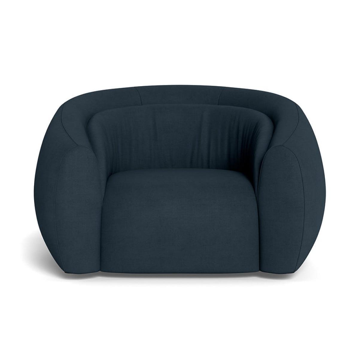 I love this little loveseat for its rich deep sea hue, which adds a sophisticated touch to both modern and classic interiors. Its rounded shape makes it instantly inviting and perfect for cosy corners or as a statement piece in a larger living space. It works well in eclectic schemes when paired with textured textiles and metallic accents, or in a minimalist setting to introduce a splash of colour without overwhelming the style. For styling tips, consider layering with patterned cushions or draped throws to add visual interest and comfort. It's also quite versatile-great for small living rooms, bedrooms, or even a chic reading nook-making it a practical yet stylish choice for many interiors.