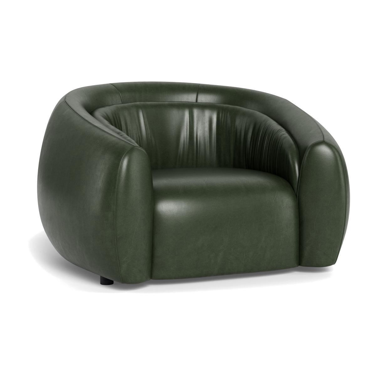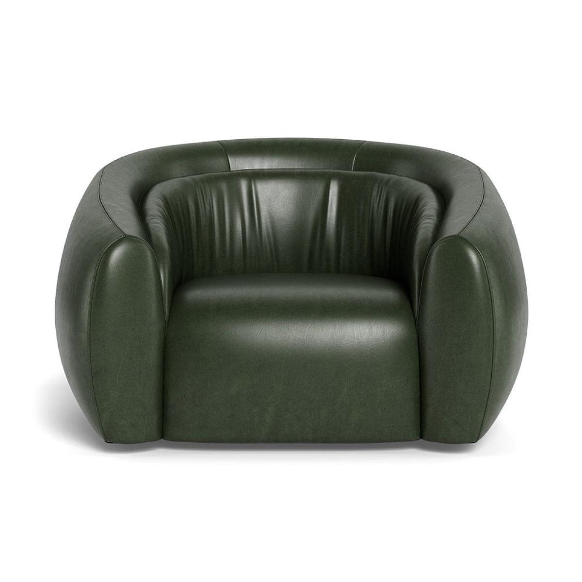I love this loveseat for its rich, vintage green leather and its substantial, rounded form that adds a cosy yet sophisticated touch to any space. It works particularly well in eclectic, mid-century modern, or contemporary interiors where a statement piece is needed. Practical styling tips include pairing it with neutral or warm-toned textiles and accessories to highlight its colour, or contrasting it with sleek metals and glass for a more modern aesthetic. Its vintage character makes it versatile enough to be the focal point in a minimalist room or part of a layered, decorative scheme. To keep it looking its best, consider adding a throw or cushion for added comfort and personality.