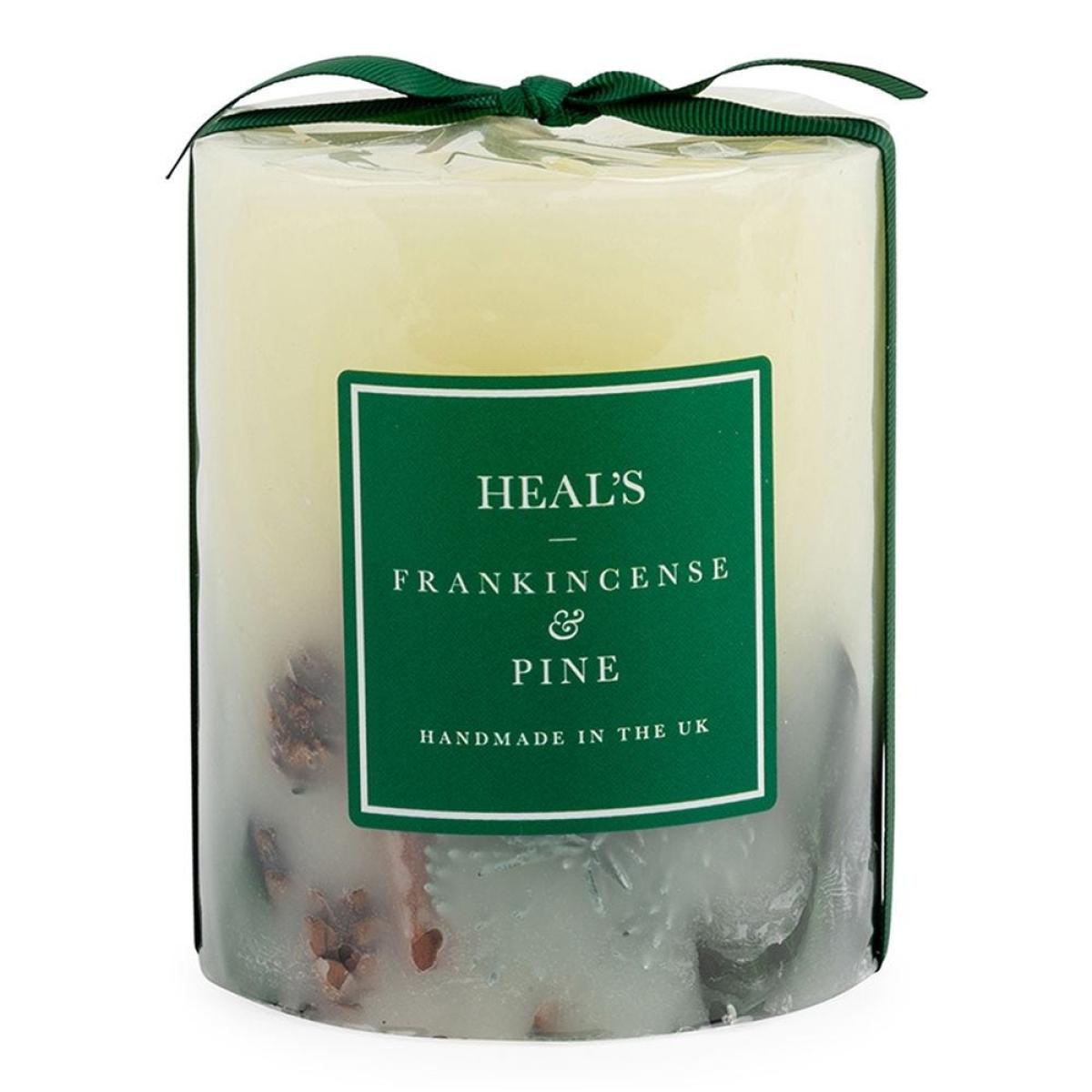 Heal's Frankincense & Pine Tall Pillar Candle with Botanicals