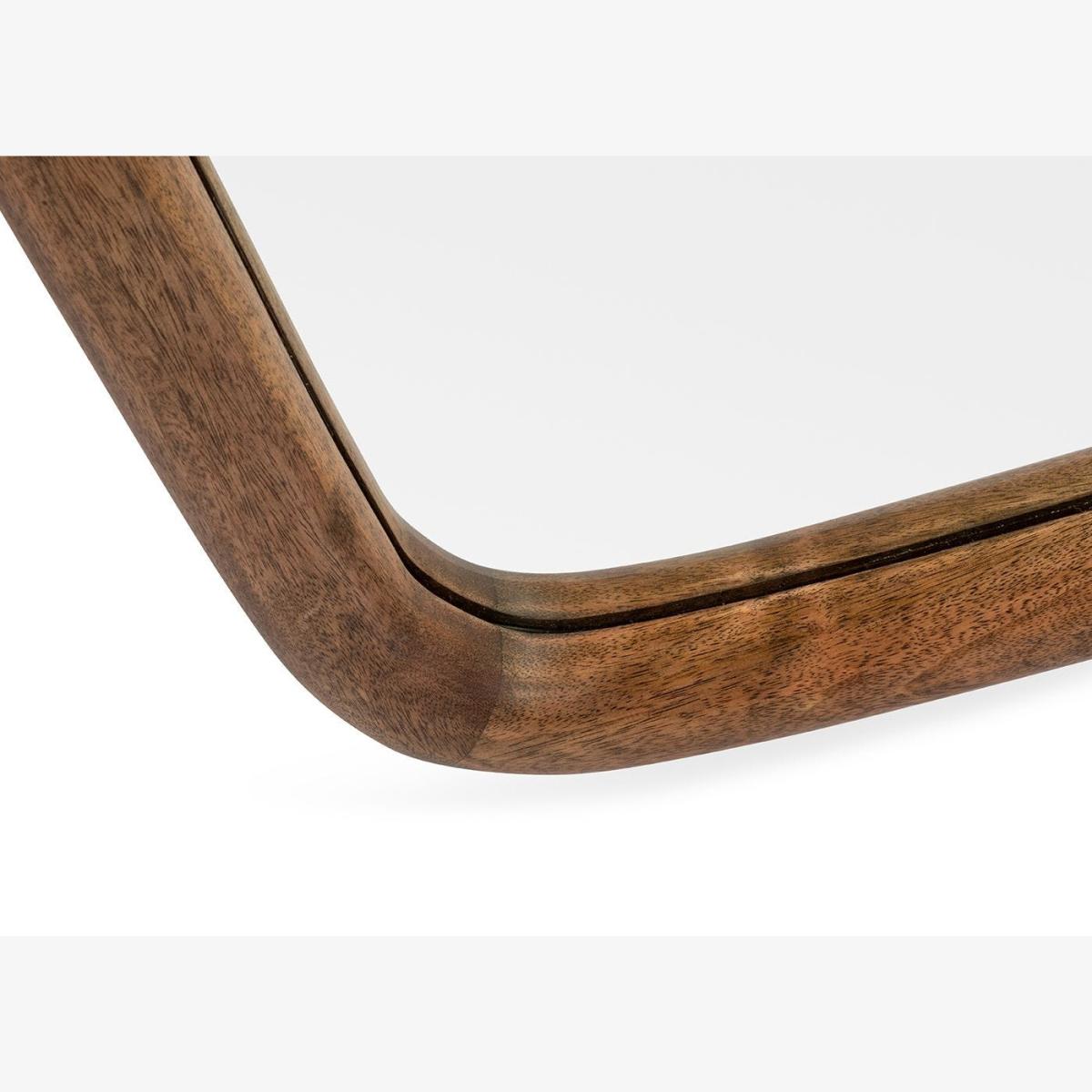 Handcrafted in India, the Genoa mirror features a smooth curved frame with a super chunky profile, making for a statement piece in any space. It’s crafted from solid mango wood and finished in a walnut stain while each piece boasts a slightly different profile.