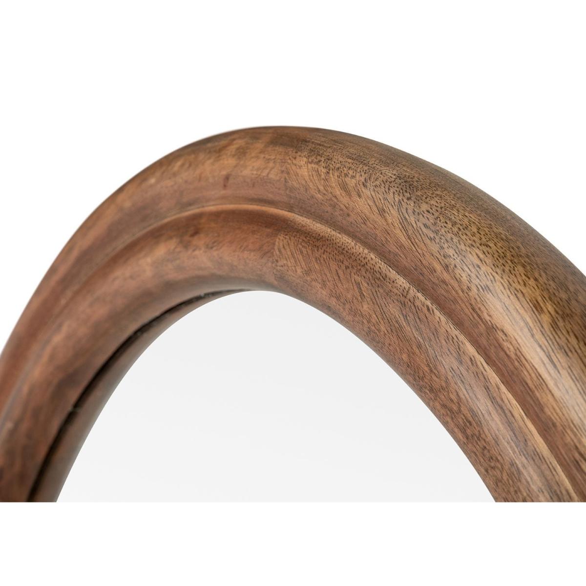 Handcrafted in India, the Genoa mirror features a smooth curved frame with a double-rounded profile, making for a statement piece in any space. It’s crafted from solid mango wood and finished in a walnut stain while each piece boasts a slightly different profile.