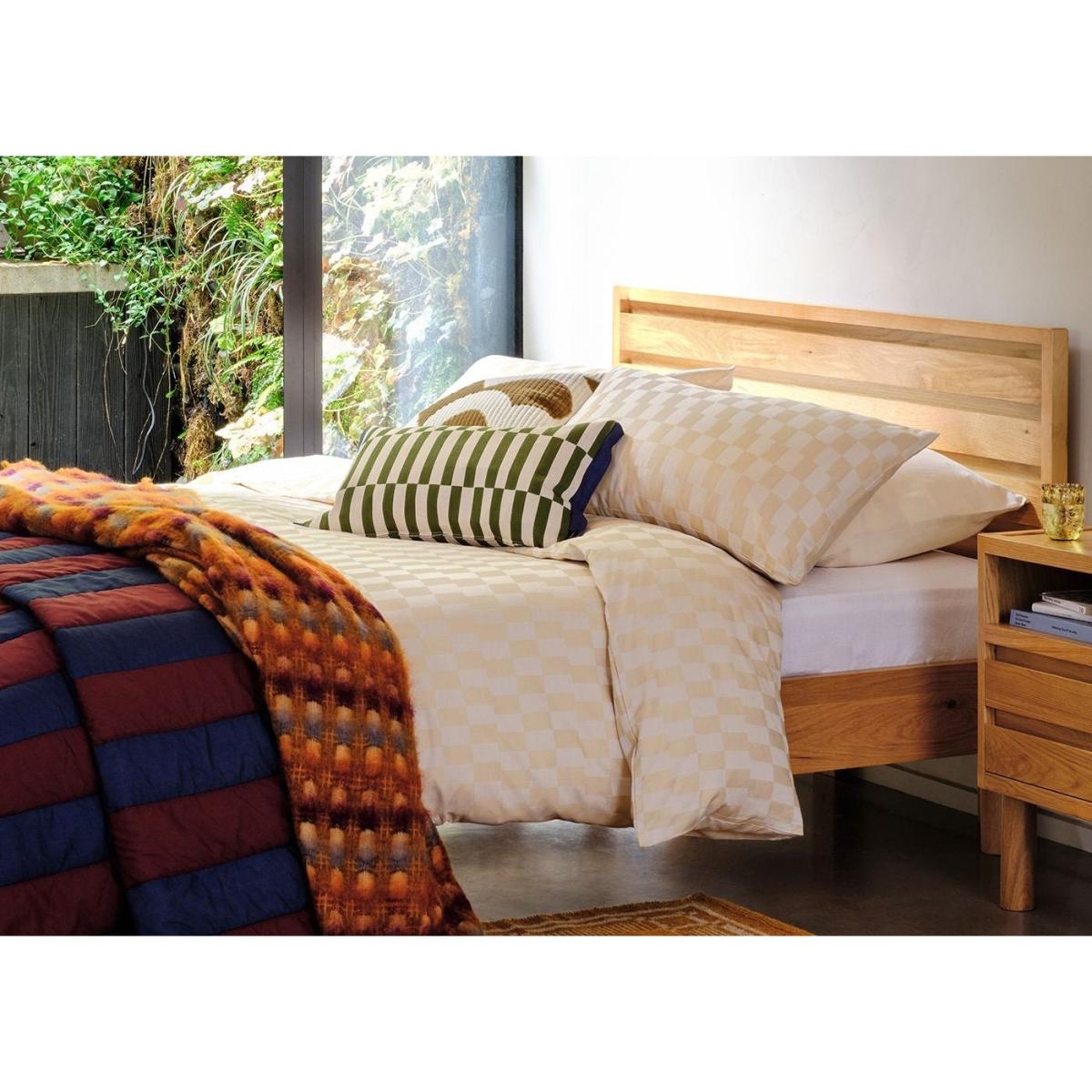 Crafted in Portugal exclusively for Heal’s, the Geo Bed Linen range brings modern texture and pattern to your bedroom. The offset geometric design is woven using a traditional jacquard technique, creating a soft play of light and shadow across the surface. Made from 100% cotton in a warm cream palette, this luxurious duvet cover is beautifully tactile and effortlessly refined, pairing effortlessly with both vibrant prints and muted, natural materials.