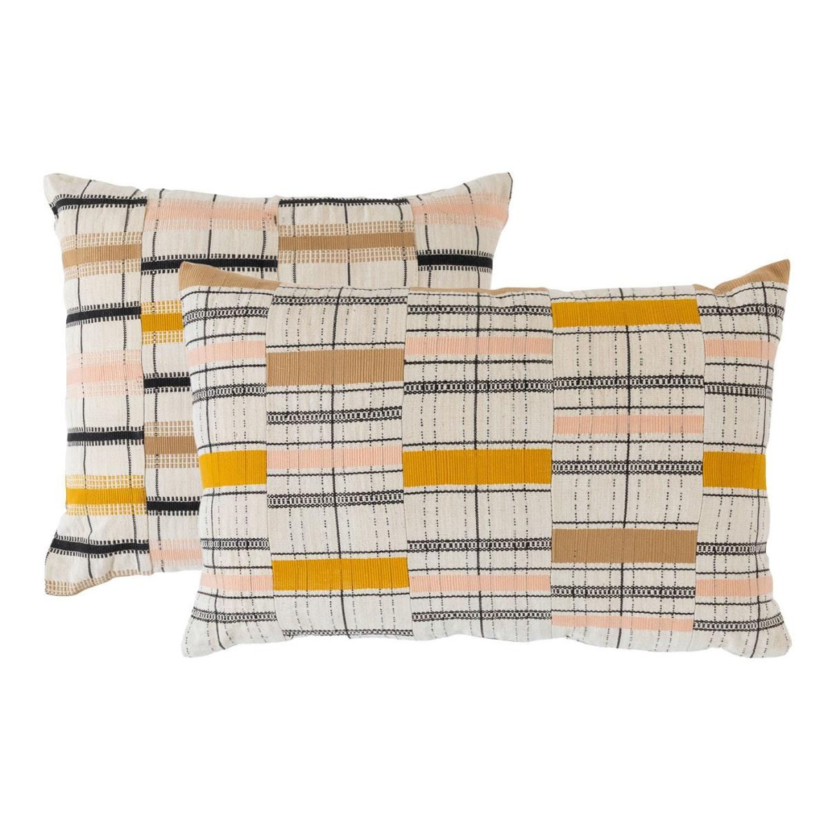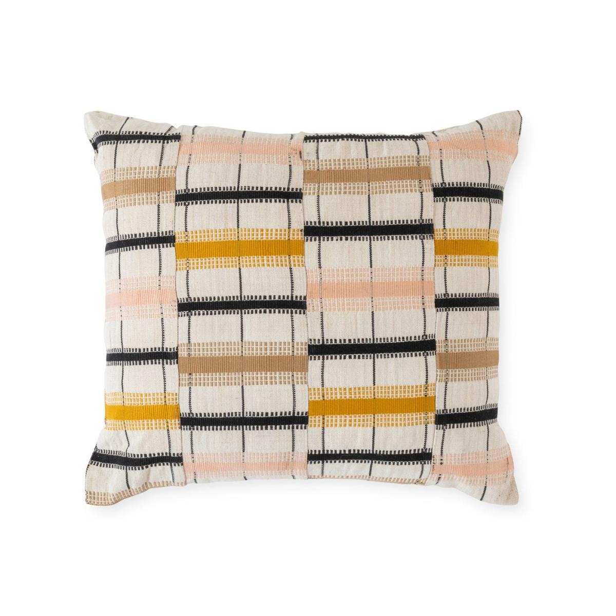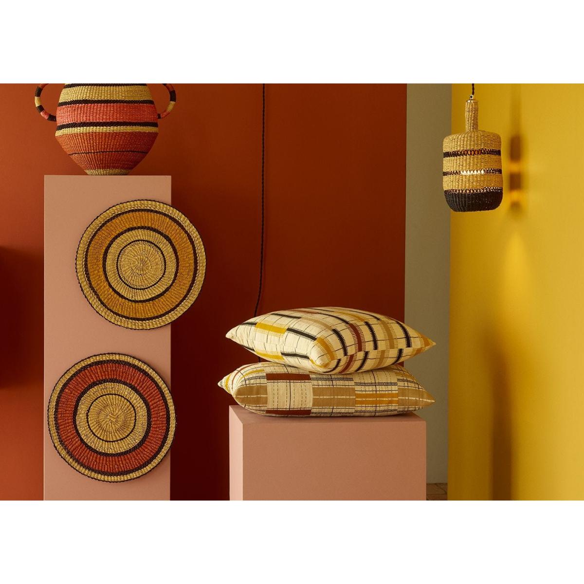 Are you looking for a new and exciting contemporary tradition? Then our graphic kente cushions may be what you seek. This intricately hand-woven cushion is an exciting combination of pattern and texture with bright and surprising colours. Kente weaving is a a traditional African weaving technic from Ghana. The weaving is perfectly tight and smooth and consist of elaborate geometric patterns repeated on fine strips of fabric. Woven on a traditional loom in strips of around 15cm. The strips are then sewn together to create a beautiful patchwork cloth.