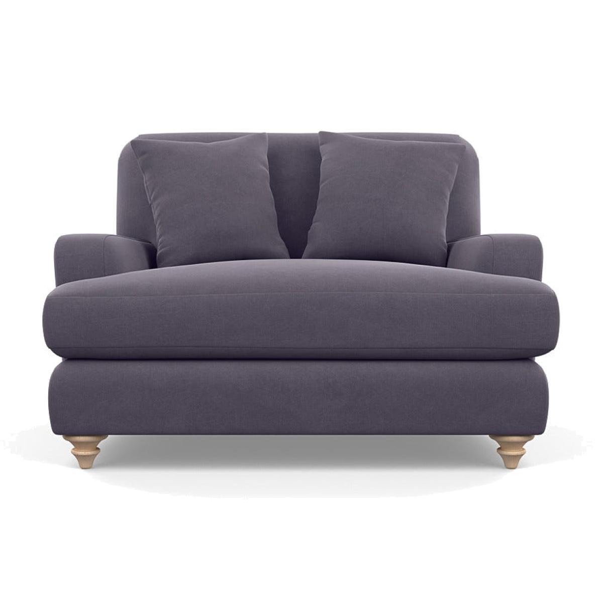 A modern take on traditional loveseat design, the elegant silhouette of the Hampstead provides a deep, inviting seat that suits both classic and contemporary styled décor. This loveseat contrasts plump cushioning with sharply tailored upholstery, creating a relaxed yet neat feel that’s ideal within a busy family home