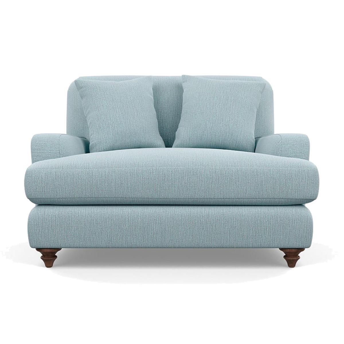 Heal's Hampstead Loveseat Smart Linen Mix Duck Egg Natural Feet - Heal's UK Furniture