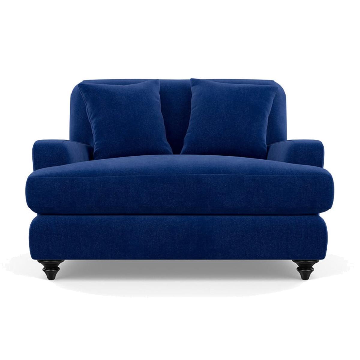 Heal's Hampstead Loveseat Smart Luxe Velvet Azure Black Feet - Heal's UK Furniture