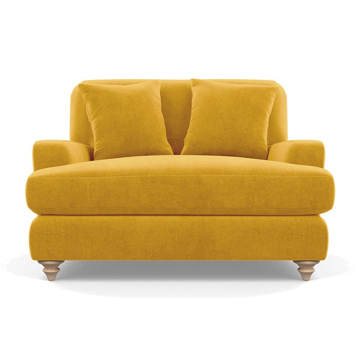Heal's Hampstead Loveseat Smart Luxe Velvet Canary Natural Feet - Heal's UK Furniture