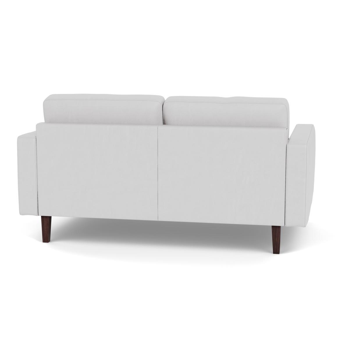 I love this sofa for its sleek, modern appeal combined with a classic touch - the leather grain adds subtle texture that elevates the look. It works particularly well in contemporary or minimalist interiors, especially those that embrace neutral tones and clean lines. Styling tips include pairing it with soft, textured cushions in muted or contrasting colours to add visual interest, and placing it on a patterned rug to anchor the space. Its versatile white finish also makes it a great canvas for layering with bold throws or accessories, ensuring it stays fresh and adaptable to changing decor schemes. The walnut feet provide a warm, grounding detail that keeps the look sophisticated and inviting.