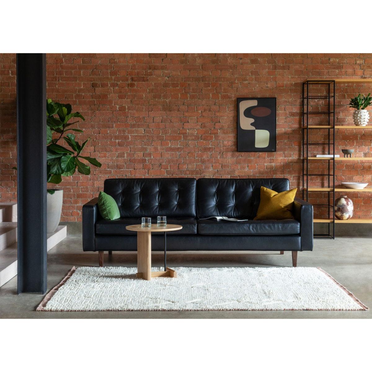 Designed by Paola Navone and exclusive to Heal’s, the Hepburn three seater sofa features the designer’s trademark blend of classic and contemporary styles. Made to order in southern Italy, a solid frame is beautifully upholstered in designer St Moritz wool or a choice of semi-aniline or soft leathers complete with mid-century inspired button cushion detail. The use of pre-stretched elasticated webbing plus foam core seat and back cushions with fibre topper provides a comfortable sit with ample posture support. Also available in fabric upholstery, choose from three foot options, natural, walnut or black wenge, to match your style.
