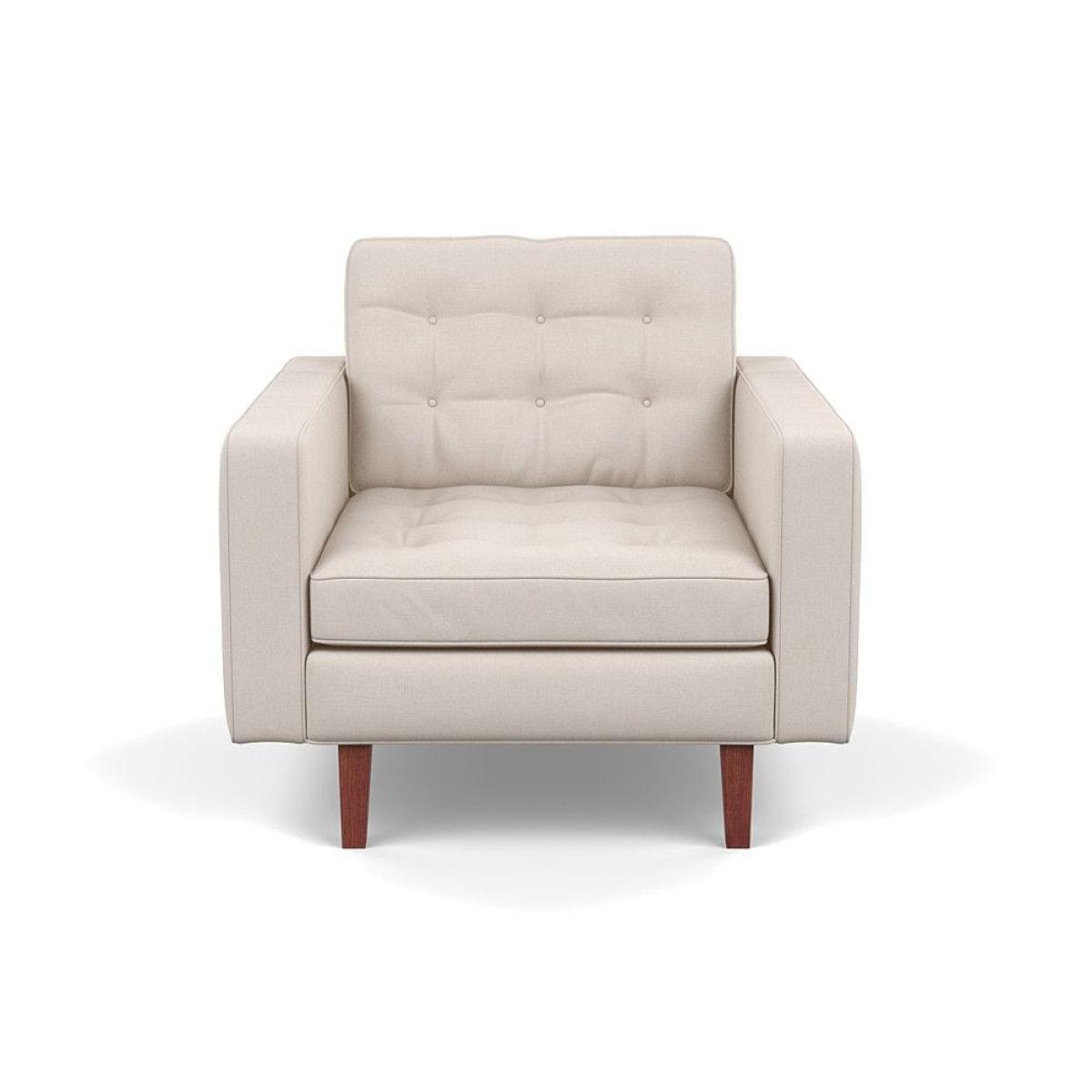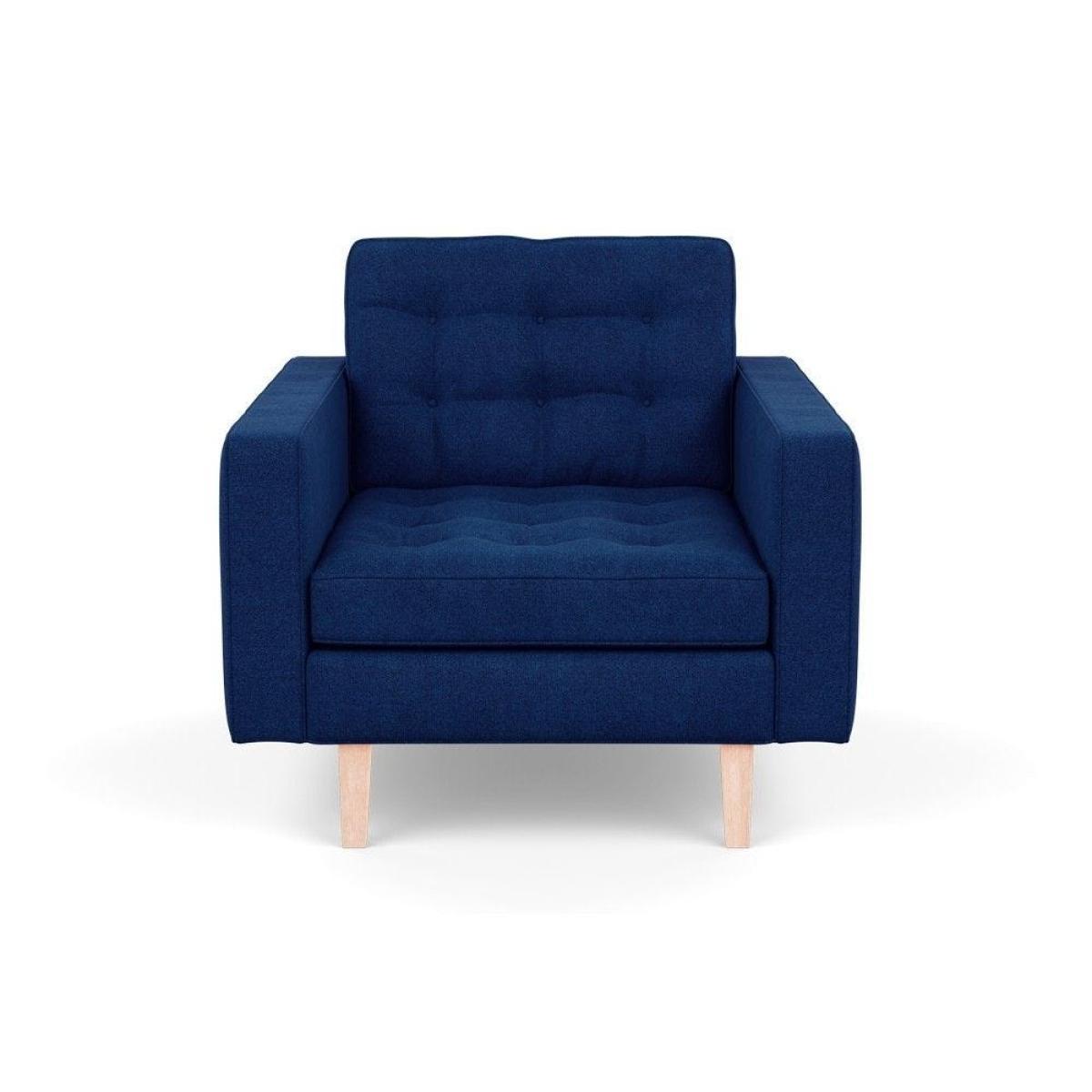 I’m a fan of the Hepburn armchair for its crisp, boxy silhouette and button-tufted back, which add character without overwhelming a space. The deep sea cotton fabric paired with wenge-stained legs makes it equally at home in a contemporary flat or a pared-back, mid-century inspired sitting room. For practical styling, tuck it beside a slimline floor lamp and a low wooden side table to create a dedicated reading nook, or position two facing each other across a minimalist coffee table for sociable chat areas. The cotton cover is hard-wearing - vacuum lightly every few weeks and treat spills promptly to keep it looking sharp.