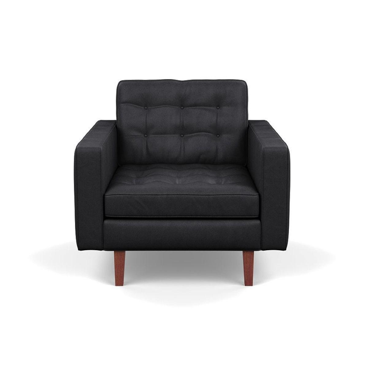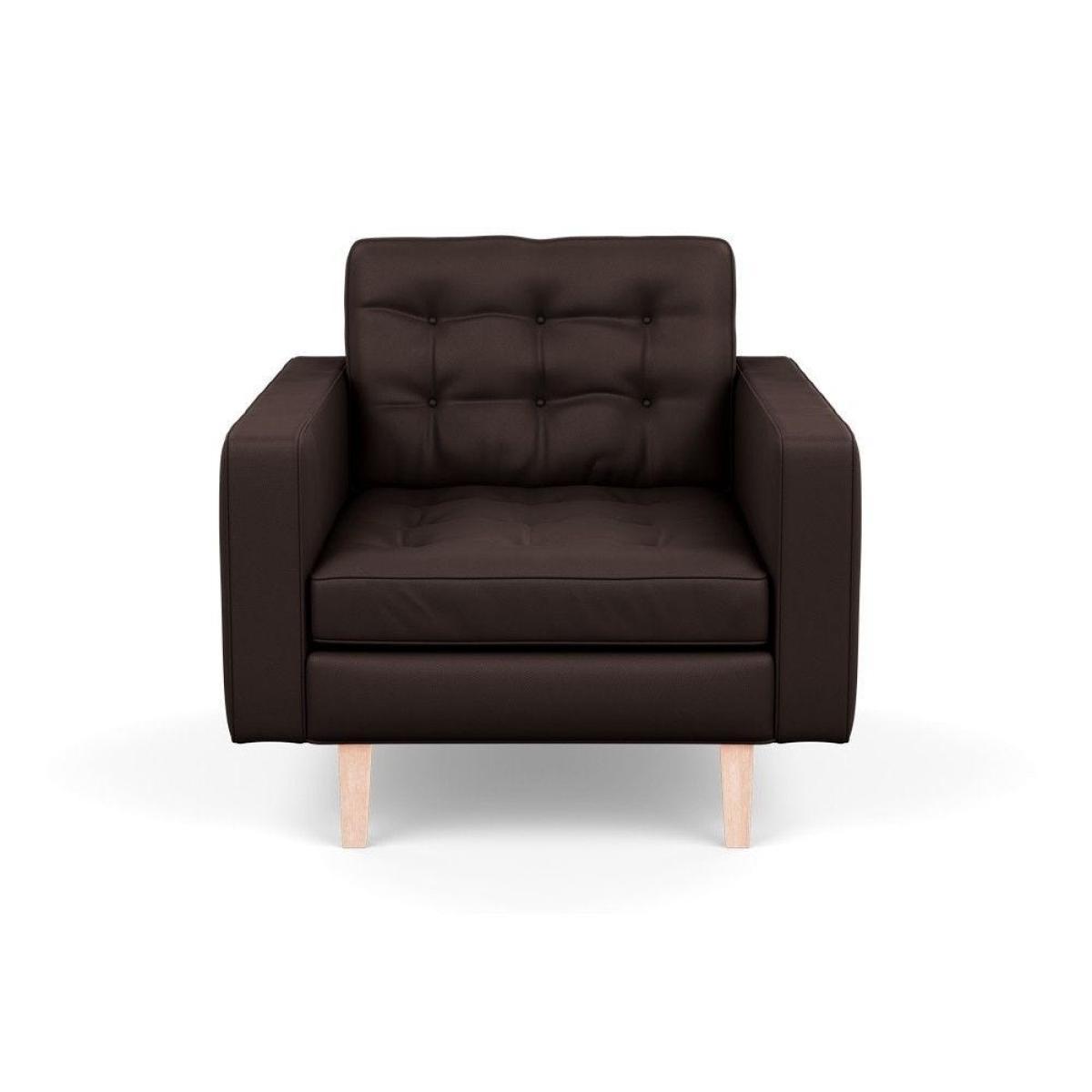 Designed by Paola Navone and exclusive to Heal’s, the Hepburn armchair features the designer’s trademark blend of classic and contemporary styles. Made to order in southern Italy, a solid wood frame is beautifully upholstered in a choice of semi-aniline or soft leathers complete with mid-century inspired button cushion detail. The use of pre-stretched elasticated webbing plus foam core seat and back cushions with fibre topper provides a comfortable sit with ample posture support. Choose from two foot options, walnut or black wenge, to match your style.