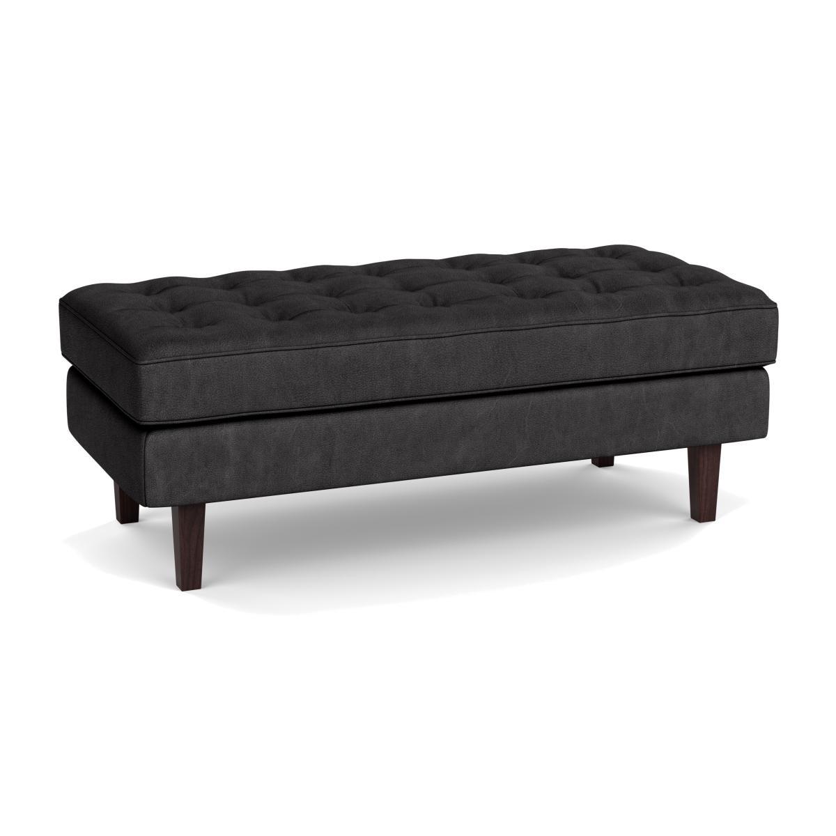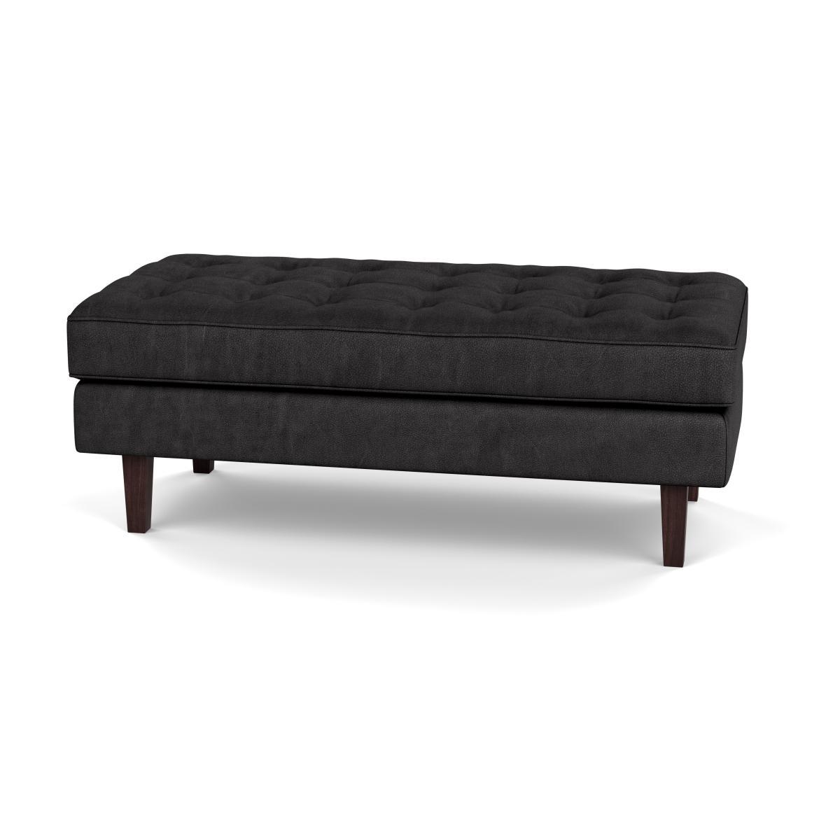 Heal's Hepburn Ottoman Leather Grain Graphite 063 Walnut Feet - Heal's UK Furniture
