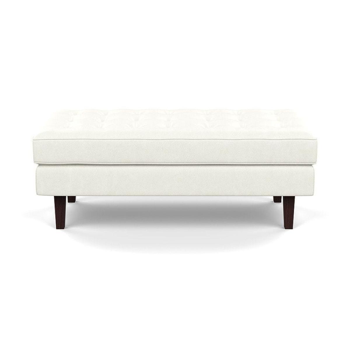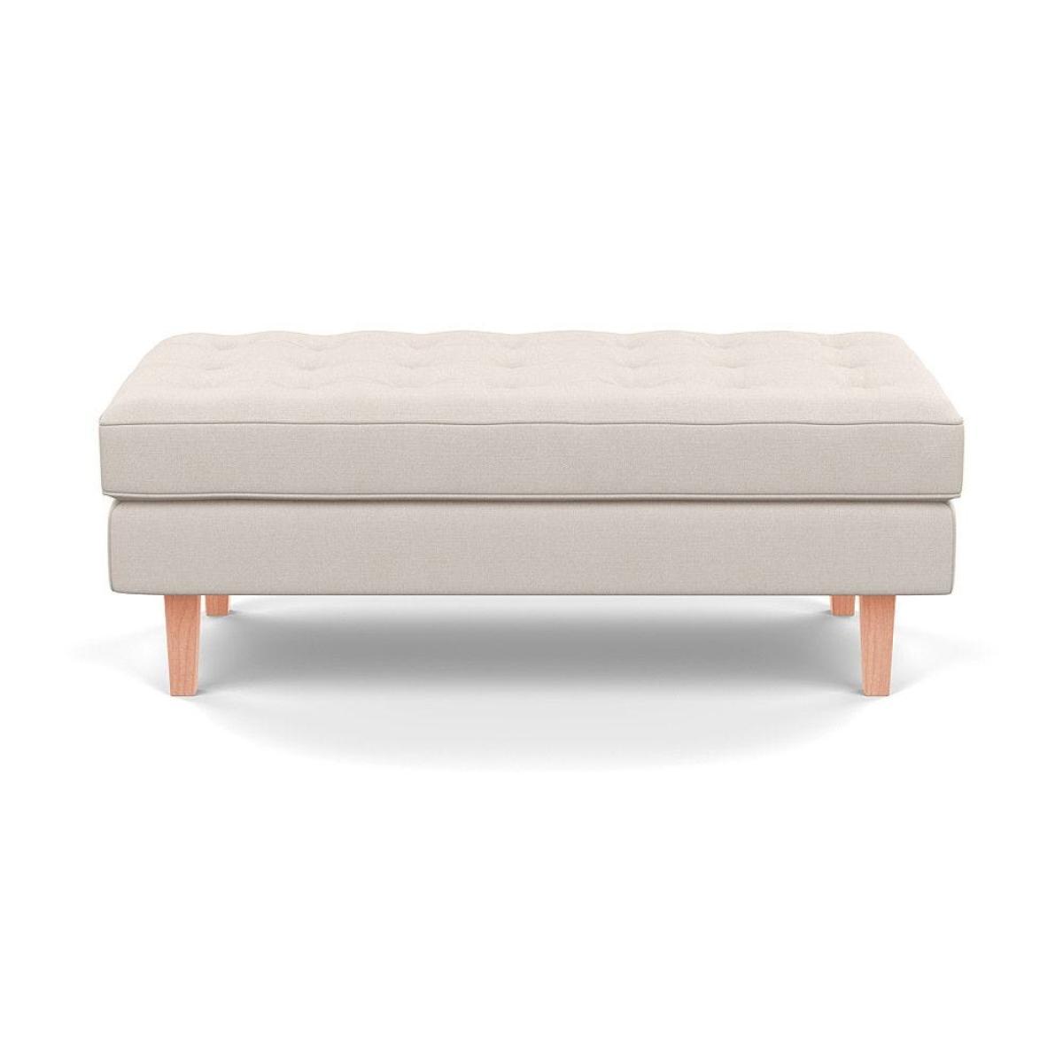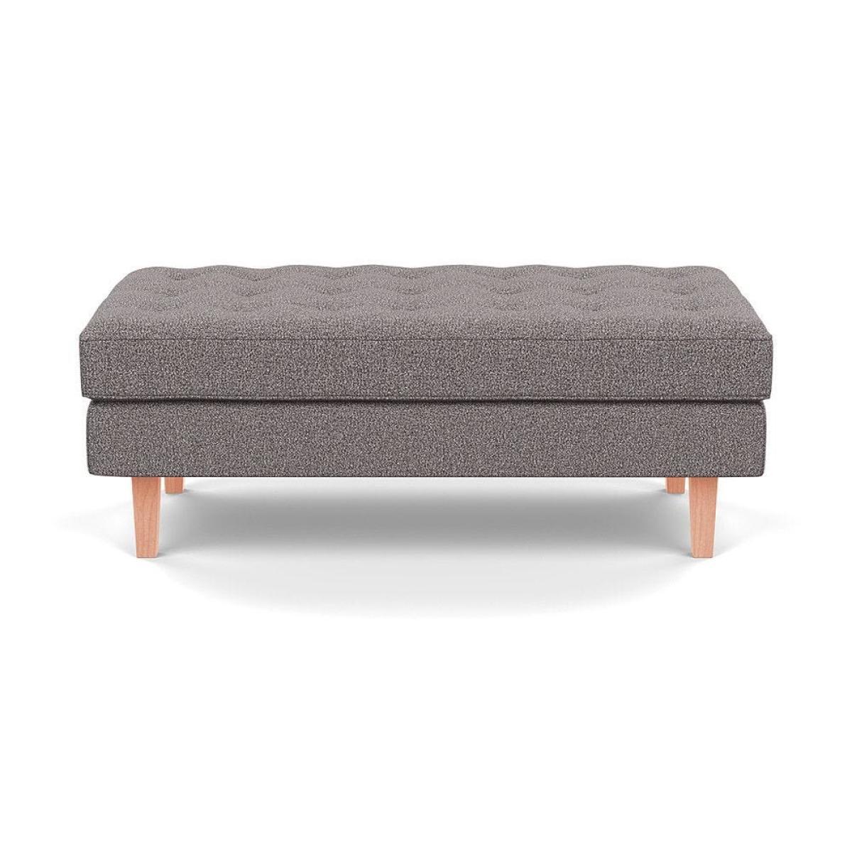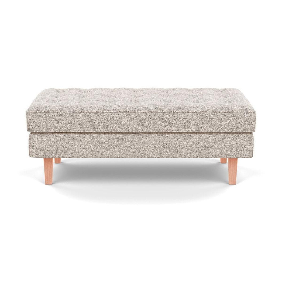 Designed by Paola Navone and exclusive to Heal’s, the Hepburn ottoman features the designer’s trademark blend of classic and contemporary styles. Made to order in southern Italy, a solid wood frame is beautifully upholstered in a choice of designer St Moritz wool, semi-aniline or soft leathers complete with mid-century inspired button cushion detail. The use of pre-stretched elasticated webbing plus foam core seat cushion with fibre topper provides a comfortable sit. Choose from three foot options natural, walnut or black wenge, to match your style.