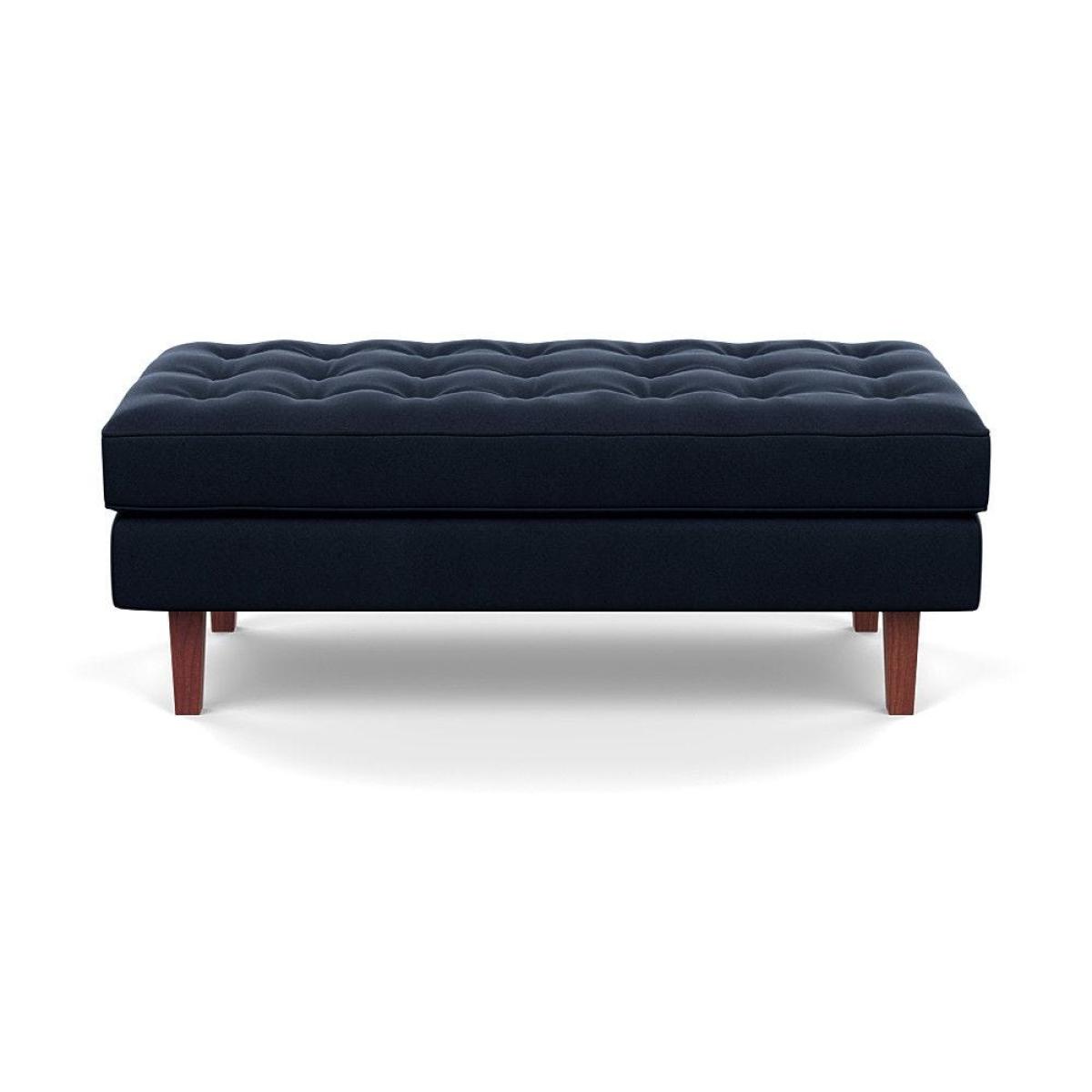 Designed by Paola Navone and exclusive to Heal’s, the Hepburn ottoman features the designer’s trademark blend of classic and contemporary styles. Made to order in southern Italy, a solid wood frame is beautifully upholstered in a choice of designer St Moritz wool, semi-aniline or soft leathers complete with mid-century inspired button cushion detail. The use of pre-stretched elasticated webbing plus foam core seat cushion with fibre topper provides a comfortable sit. Choose from three foot options natural, walnut or black wenge, to match your style.