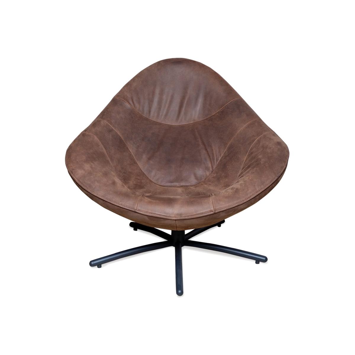 Heal's Hidde Swivel Armchair in Bald Dark Brown Matt Black Feet