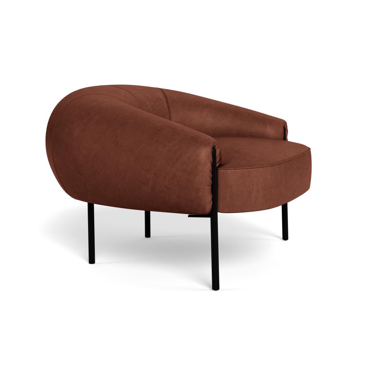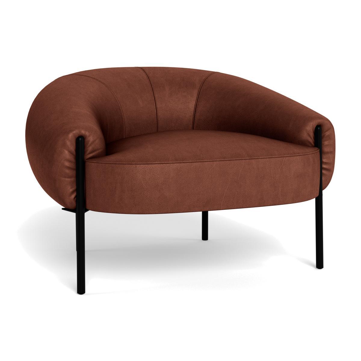 I love the Isola chair for its compact, sculptural form and warm leather-grain finish - it instantly softens a minimalist or industrial setting while still feeling contemporary. Its dark brown upholstery and slender black legs pair well with natural oak or marble side tables, and it’s roomy enough for a cosy reading nook without overwhelming a smaller living space. Styling tip: layer in a neutral linen throw or a tonal wool cushion to add texture, then anchor the spot with a low-pile rug in muted greys or soft beiges. Position it beside a slim floor lamp or next to a low console to create a stylish corner that’s both inviting and practical.