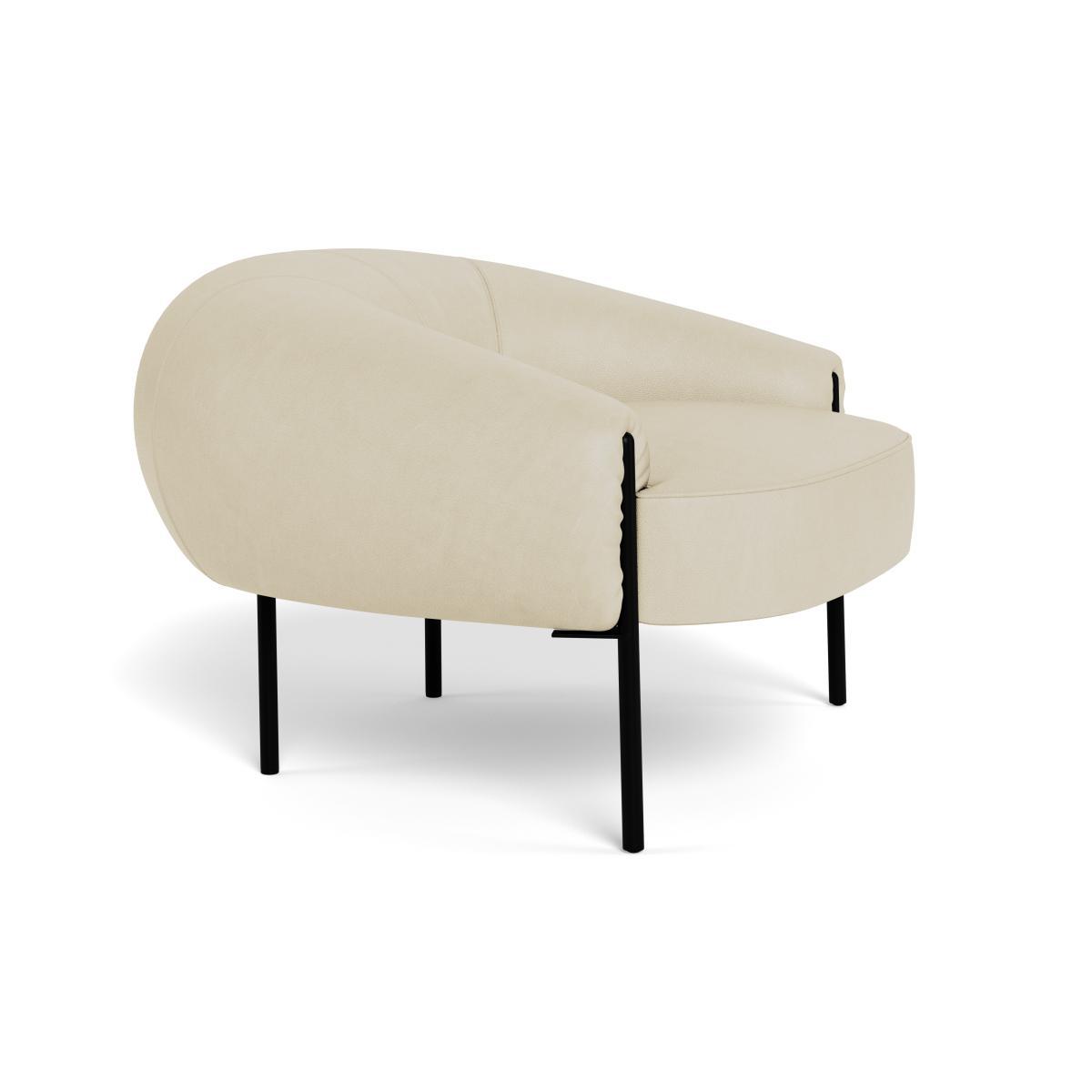 I’d call this the Isola chair - its softly rounded back and slim black legs give it a clean, modern profile that works brilliantly in both minimalist and Scandi-inspired living rooms. The leather-grain finish in Storm 006 offers just enough texture to feel warm without overpowering a neutral palette, and the low, open frame keeps the room feeling spacious. For styling, tuck it beside a slim console or pair with a low coffee table in light oak to play up the contrast of dark metal and pale upholstery. Add a single, textured cushion or a lightweight throw in muted tones (think soft grey or dusty rose) for a touch of comfort. It also makes a chic reading nook if you place it next to a floor lamp and a small stack of art books.