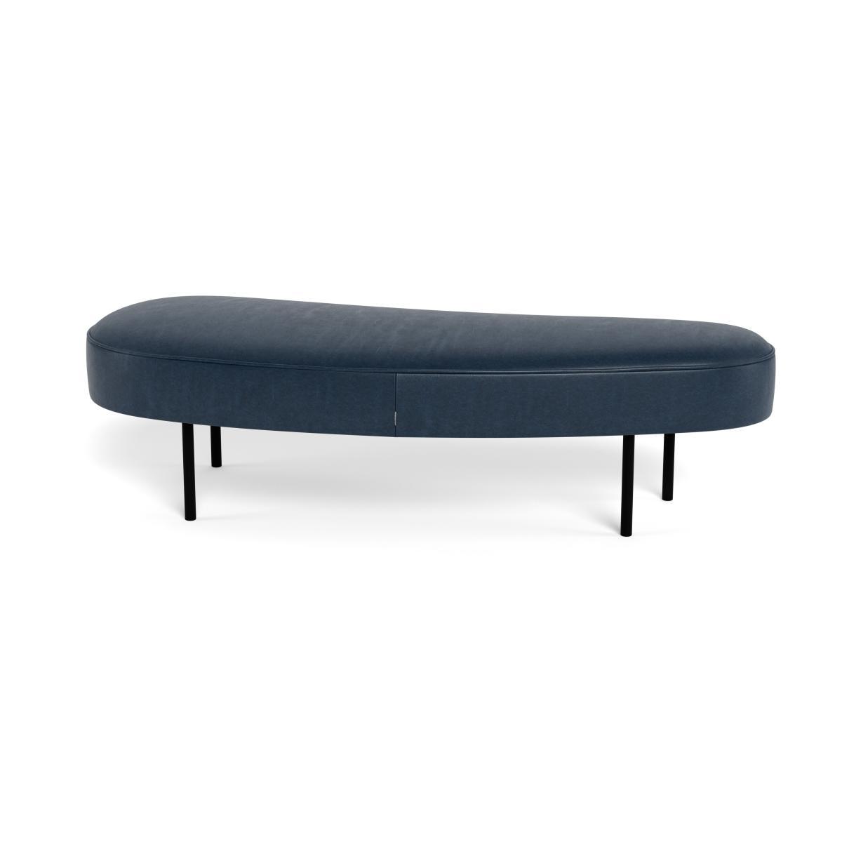 Heal's Isola Large Ottoman Leather Stonewash Navy Blue 279 Black Feet - Heal's UK Furniture