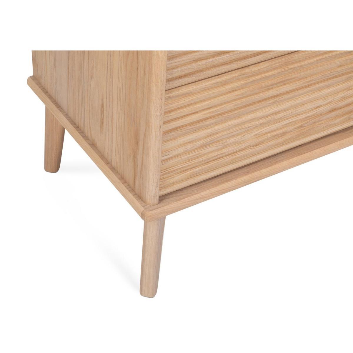 As part of the Kendal collection, this bedroom dresser is characterised by textured hardware that features stylish groove detailing to offer a tactile finish. There is also a brushed brass handle that gives it a luxurious feel. Crafted from light solid and veneered oak well-built frame ensures this piece will last over time, making it a timeless addition to your home. This Kendal cabinet collection can be paired with the Cartmel bed for a coordinated contemporary look.