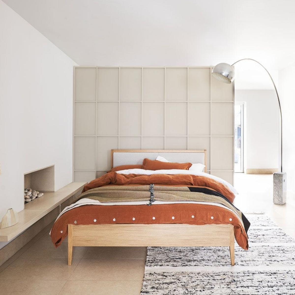 Danish design duo Says Who created the Lars Double Bed exclusively for Heal’s. Offering a fresh and modern approach to design, the bed boast a solid oiled oak frame, headboard and legs. The headboard features subtle groove detailing and is upholstered in cream fabric. Perfect for modern bedrooms, Lars will offer a touch of Scandinavian design to your room.