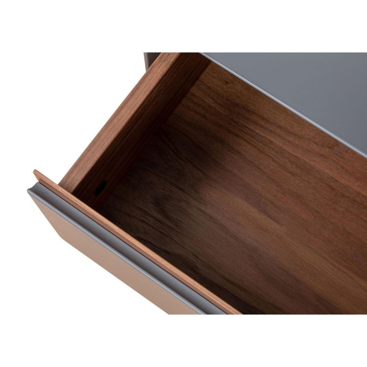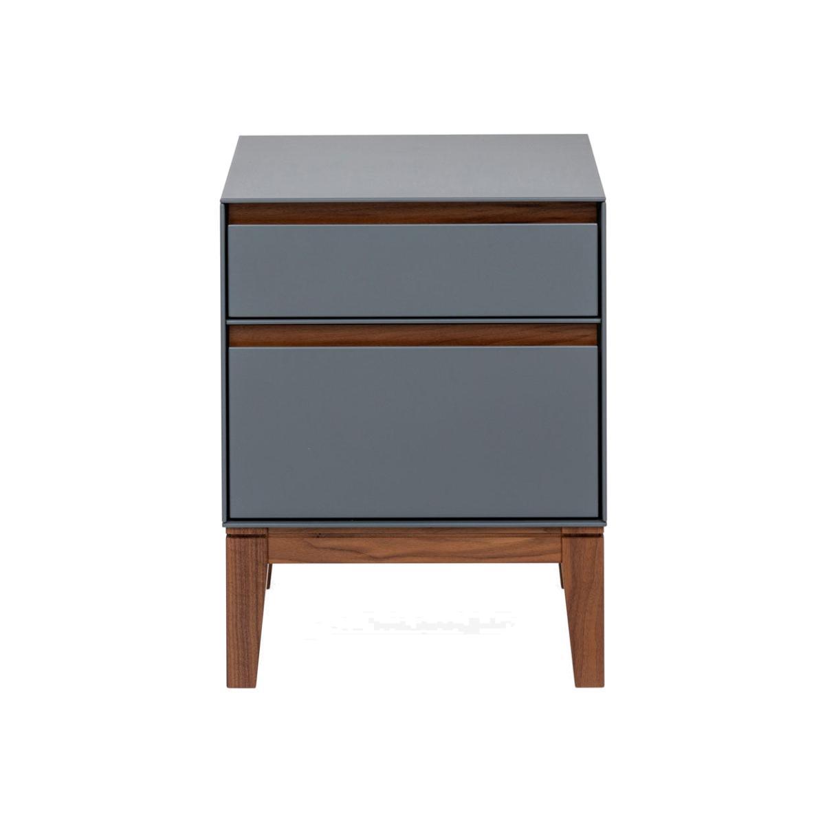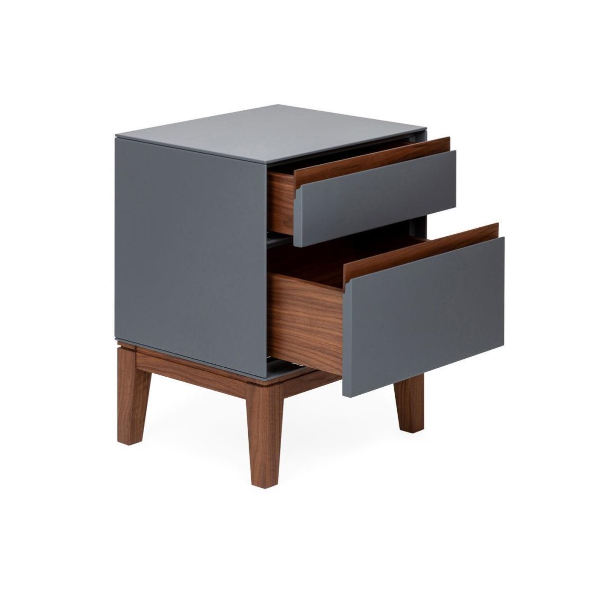 I really like how this Lars bedside table combines a matt grey finish with warm walnut detailing - it feels modern without being cold. Its clean lines and compact footprint suit Scandi, mid-century or pared-back contemporary bedrooms, and the two drawers keep bedtime clutter out of sight. To style it, try a low-profile lamp and a small plant or ceramic vase on one side, with a neat stack of books or a slim tray on the other. The contrast between the grey front and wooden legs also lets you introduce accent colours elsewhere in the room without it feeling too busy.