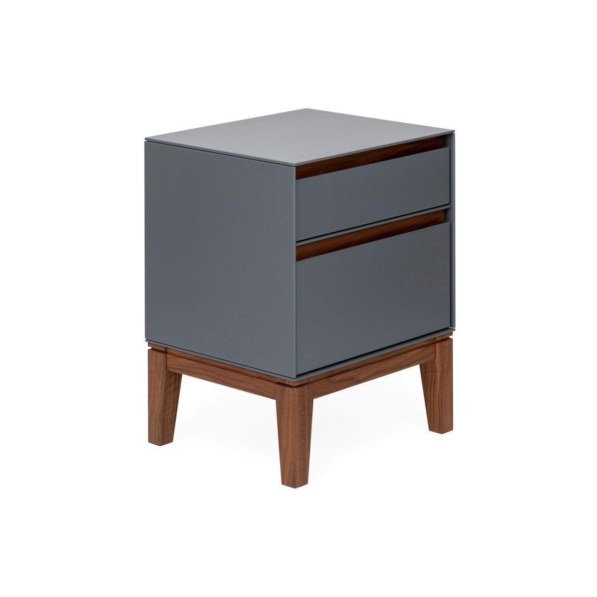 Danish design duo Says Who created the Lars Bedside Table exclusively for Heal’s. Offering a fresh and modern approach to design, the bedside table boasts a matte, durable grey painted finish and walnut detailing. This walnut detailing extends to the contemporary solid wood legs and to the inside of the two drawers which are crafted from walnut veneer. Perfect for modern bedrooms, Lars will offer a touch of Scandinavian design to your room.