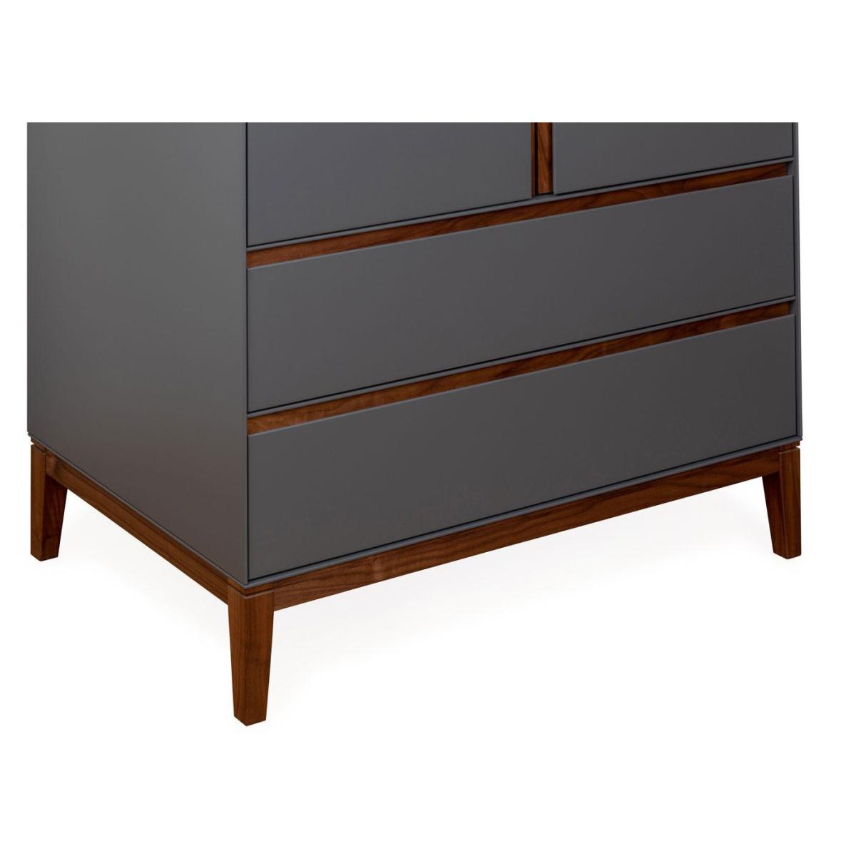 Danish design duo Says Who created the Lars Wardrobe exclusively for Heal’s. Offering a fresh and modern approach to design, the wardrobe boast a matte grey painted finish and walnut detailing. These walnut accents extend to the solid wood legs and into the two practical drawers at the wardrobe's base. Perfect for modern bedrooms, Lars will offer a touch of Scandinavian design to your room.