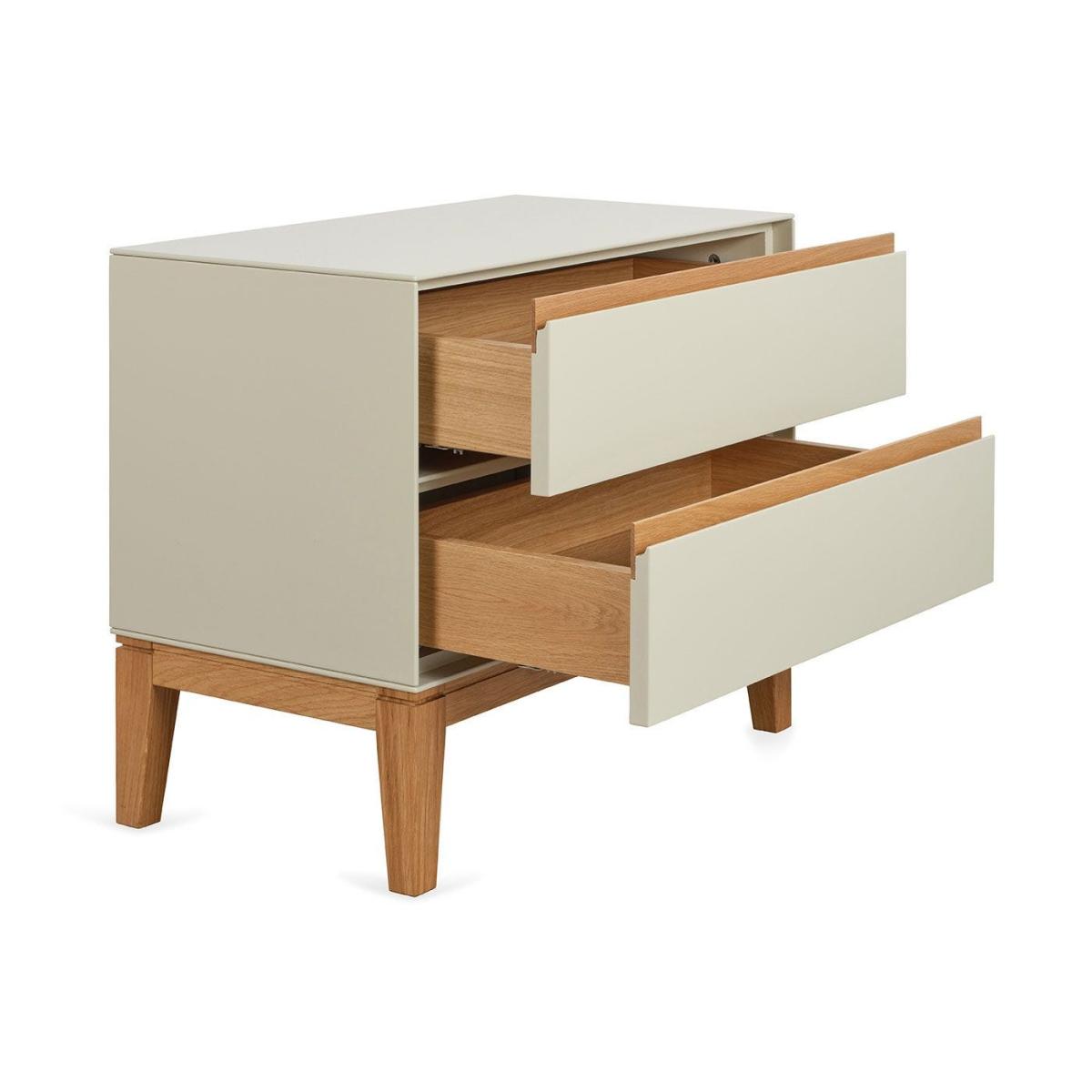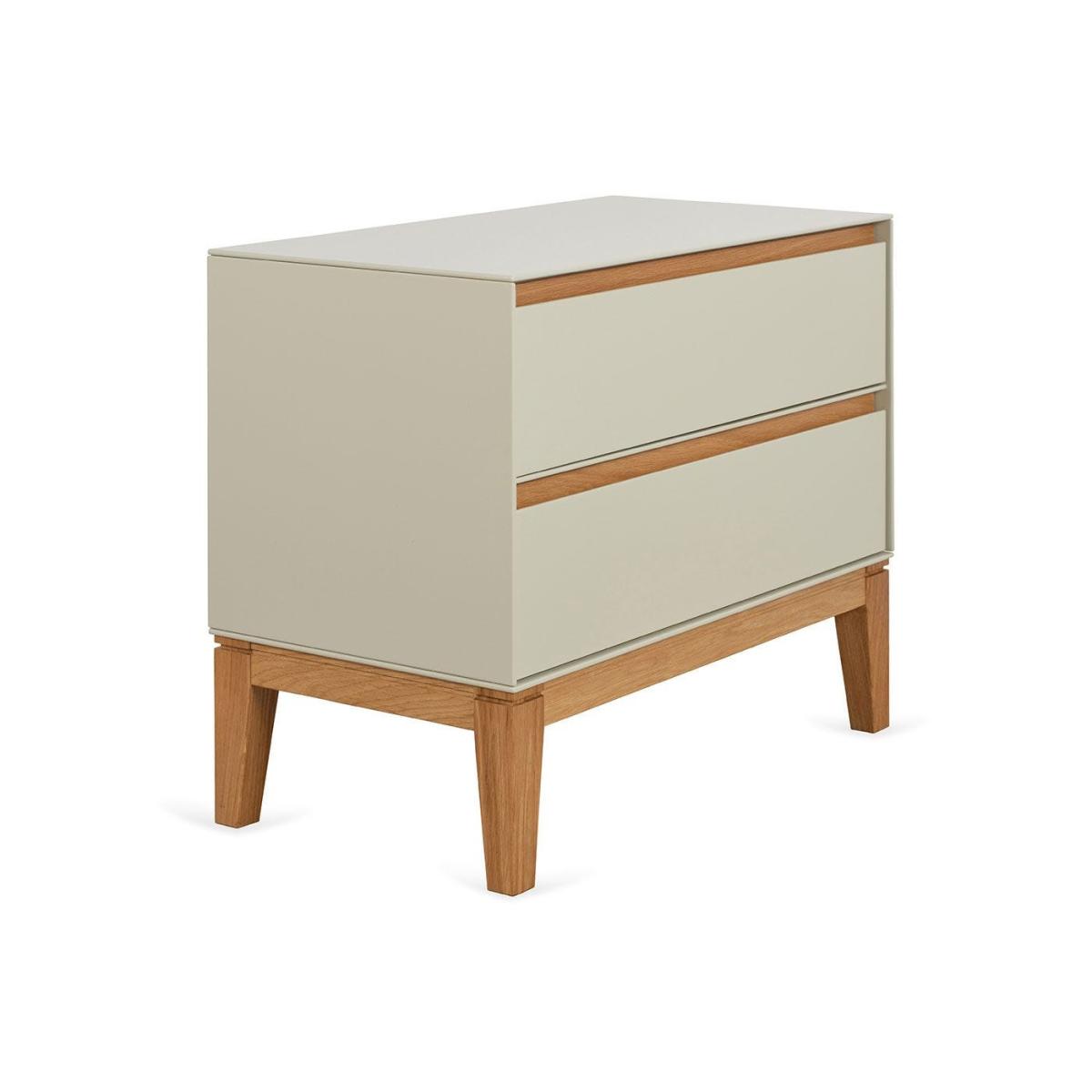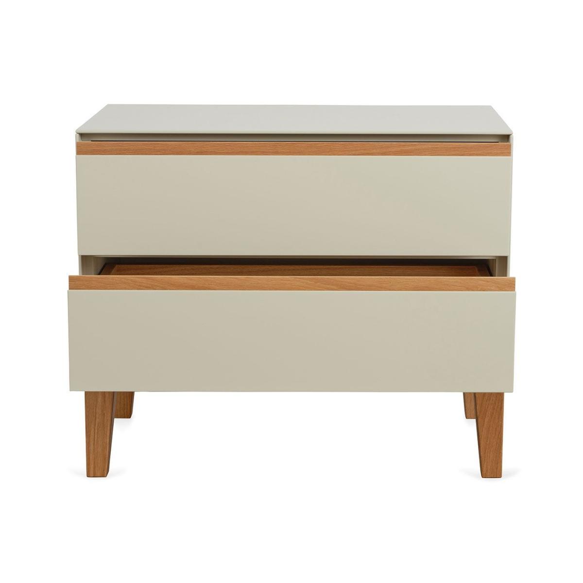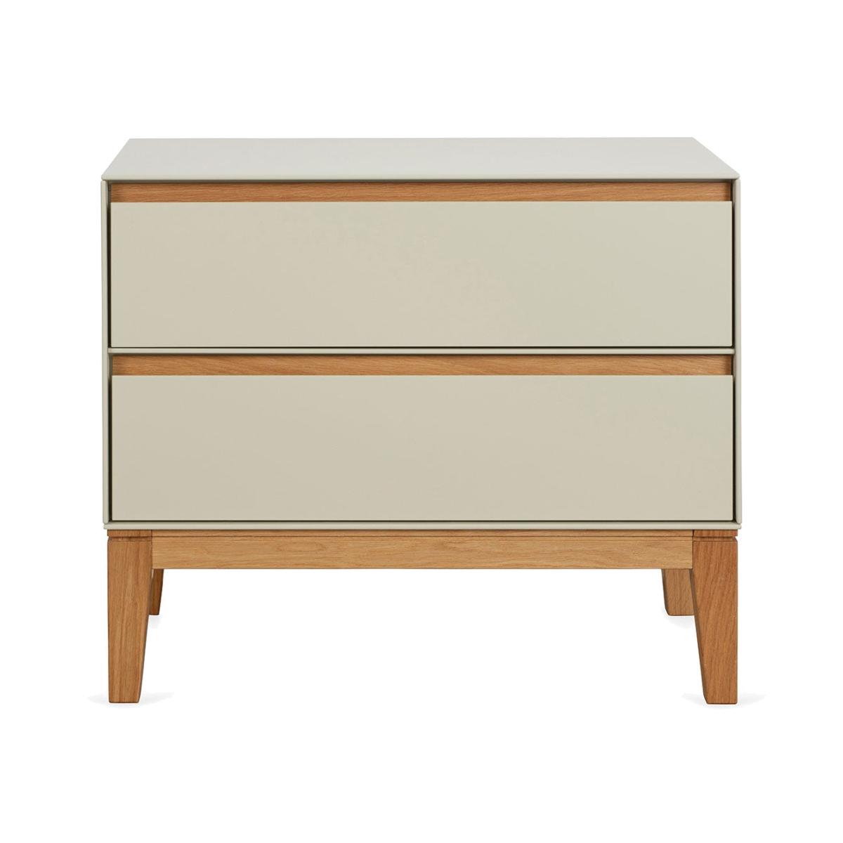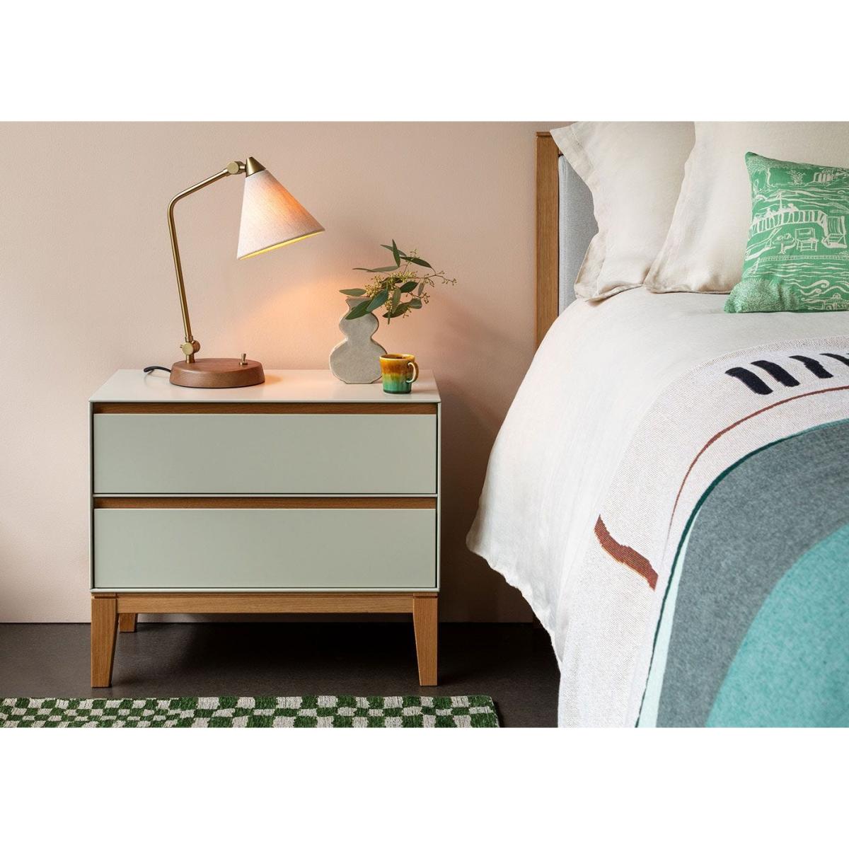I’m a fan of the Lars bedside table in cashmere because its muted tone and oak-framed drawers slot straight into a variety of schemes - from Scandi-inspired simplicity to contemporary or mid-century looks. Its generous two-drawer width gives you hidden storage for bedside clutter, while the raised legs add a sense of airiness in smaller rooms. Styling-wise, keep it practical: a low-profile lamp or wall light, a neat stack of books and a small ceramic dish for jewellery or watch. If you want a touch of greenery, a compact succulent or trailing plant softens the straight lines without overwhelming the surface.