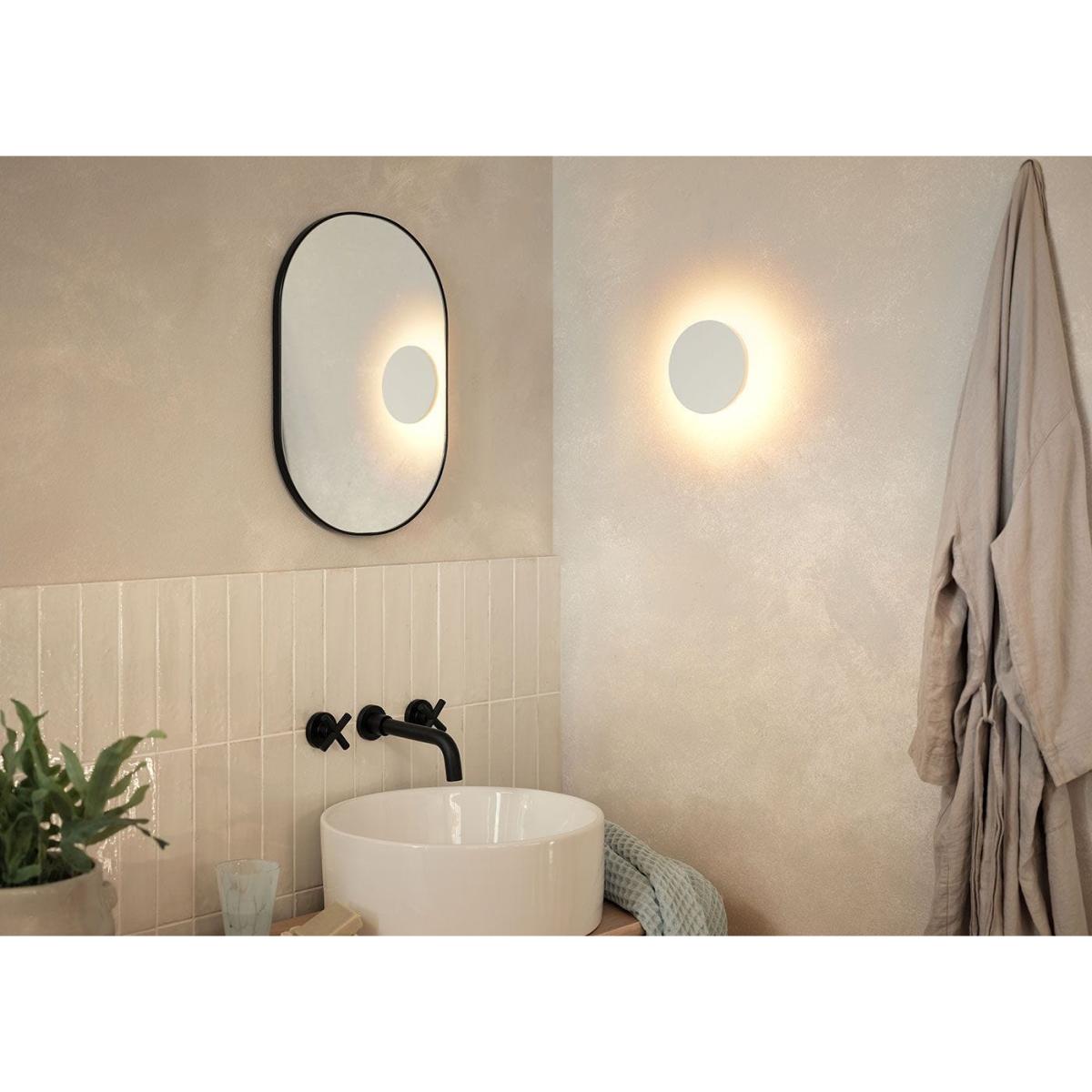 This circular Outdoor LED Wall Light in white is exclusively available at Heal’s and boasts an IP54 rating, making it suitable for bathroom lighting zones 1, 2 and 3. The wall light is crafted using die-cast aluminium and powder coated to help it withstand the elements. Its neat circular design is almost invisible against a white wall when off but casts a warm halo of light when illuminated.