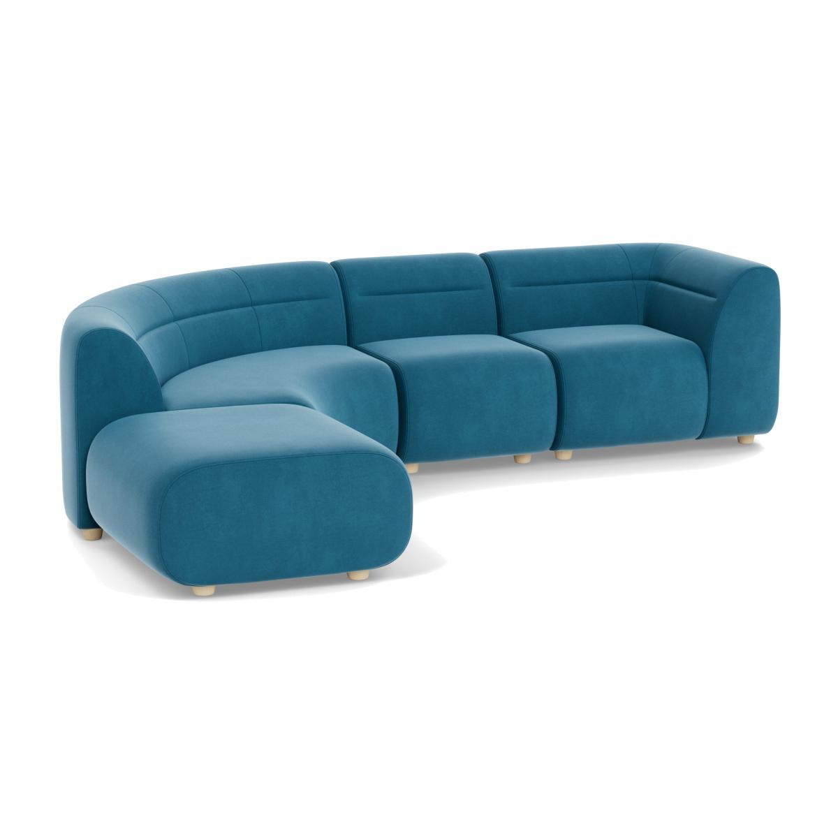 Heal's Lilli Left Hand Facing Curved Corner Sofa Smart Velvet Ocean Natural Ash Feet - Heal's UK Furniture