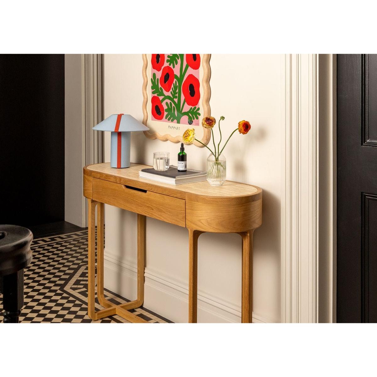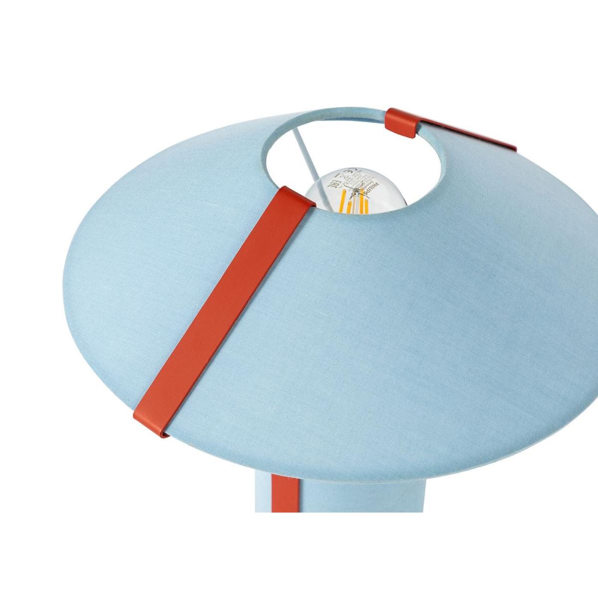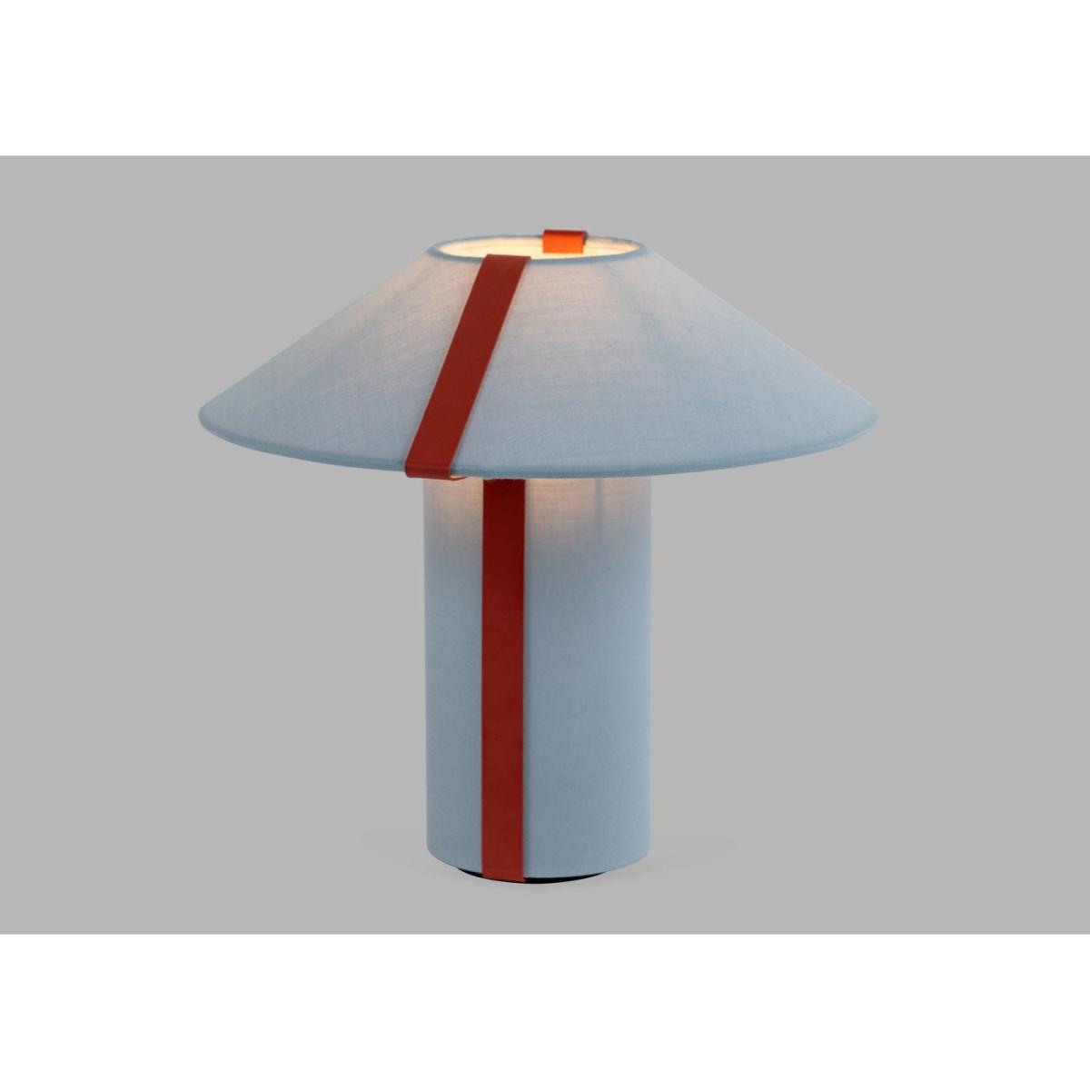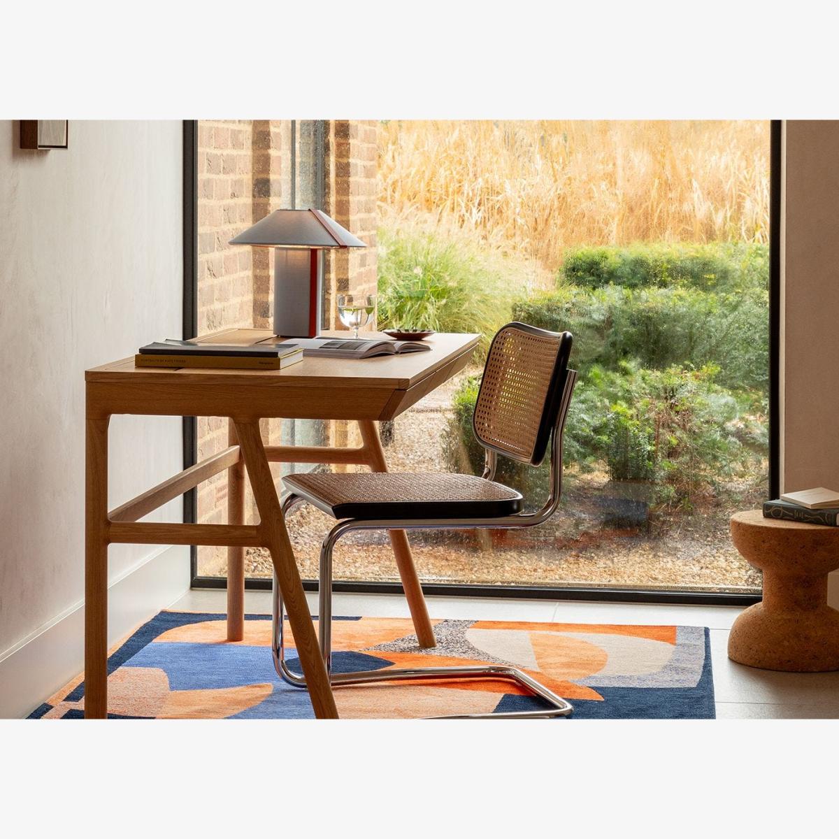 On-trend but timeless, the small but perfectly formed Linje table lamp – meaning ‘line’ in Danish – comprises a base and shade in a matching blue fabric, teamed with a crisp metal detail in striking red.
