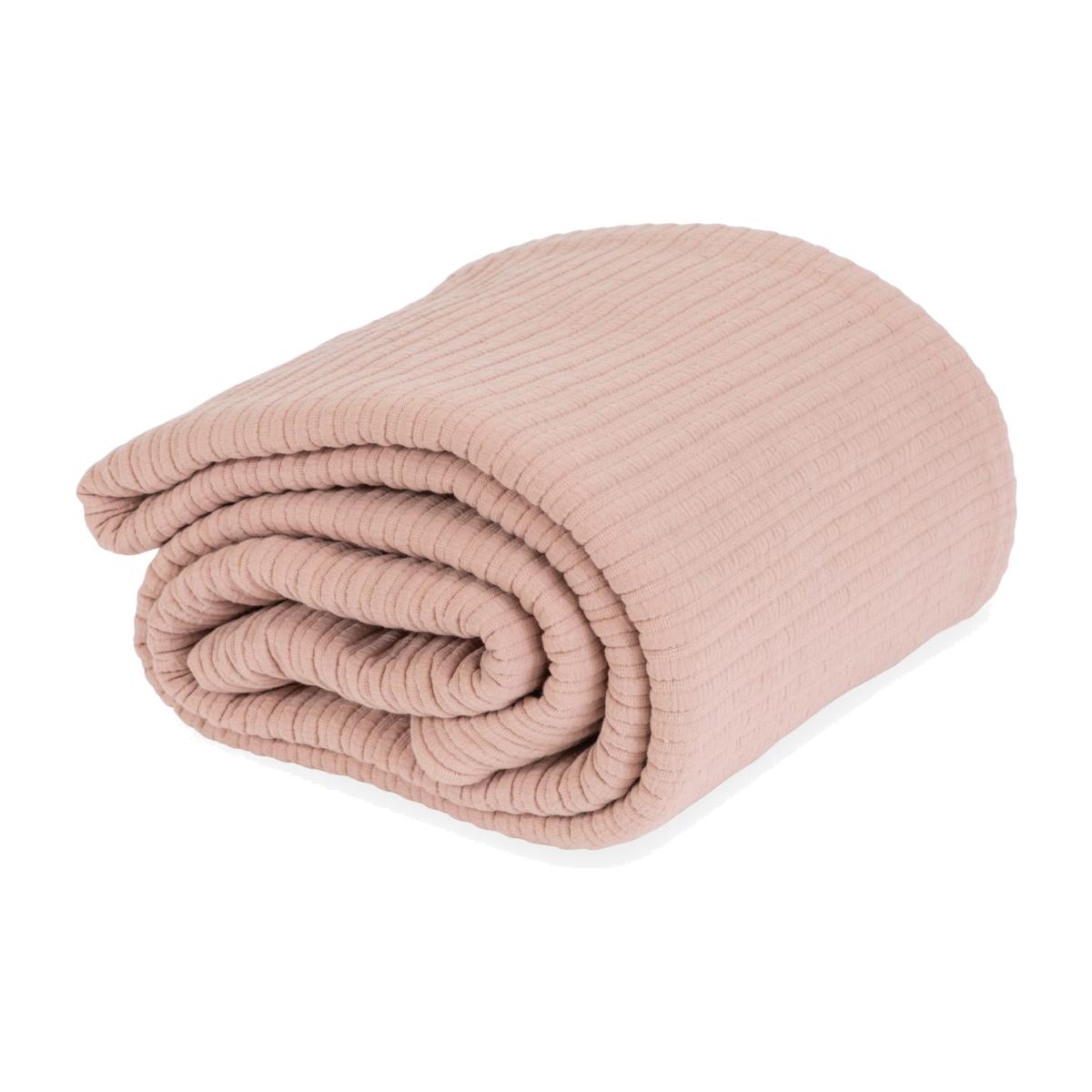 Our exclusive Lule Cotton Linear Quilt is made from a matelasse weave in a dusky pink hue. Each one is crafted in India using 100% cotton with a timeless ribbed design. The quilt is perfect for layering with other textiles, we suggest our washed linen range for a beautiful aesthetic all year long.