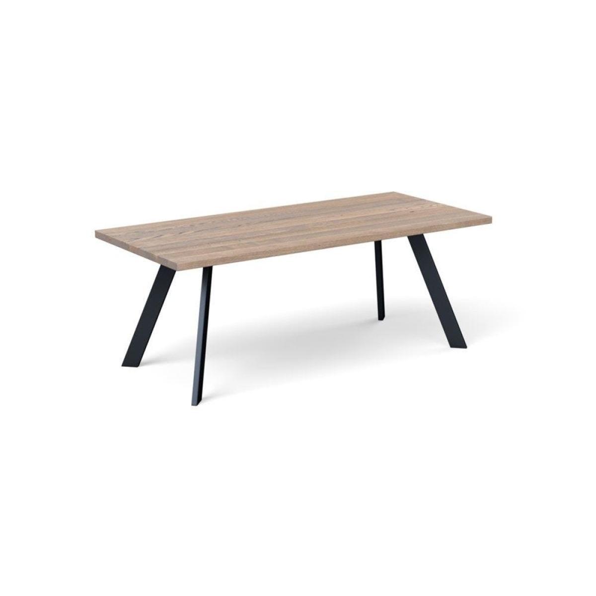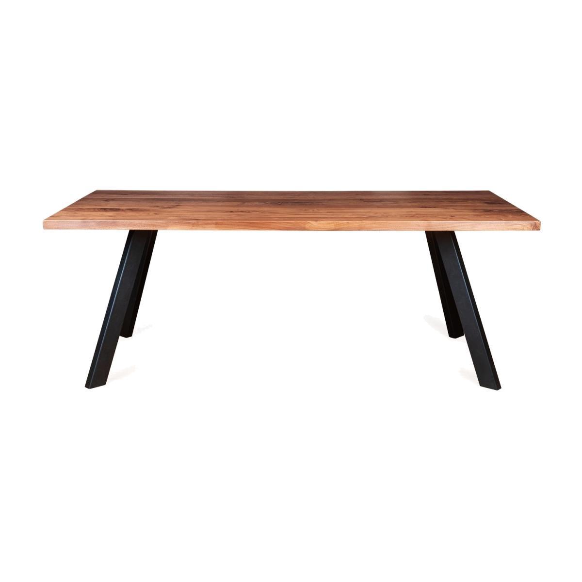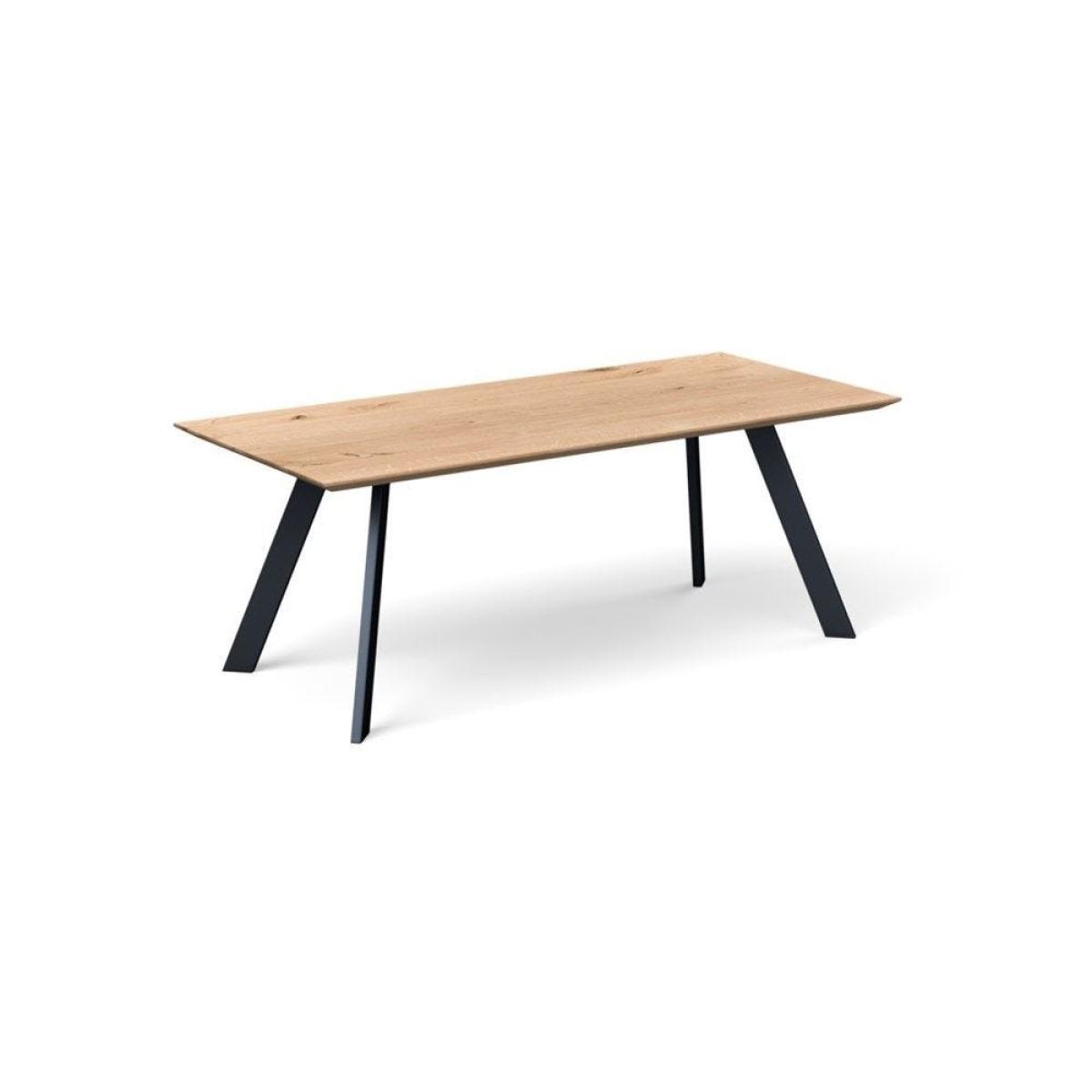 Heal's Designed by You collection of dining tables and benches allows you to create the perfect table for your space. Our tables are made of solid oak or walnut in an oiled finish and are available in seven lengths, two widths, and six different wood finishes and three different edge profiles to create a table that is the perfect fit for your home. Grain, knots and cracks are a natural property of all solid wood and add beauty and interest. Each piece is unique and will have a different grain pattern and variances in shading and colour. This is the charm of solid wood and is a different look to veneers which are more uniform. The oiled finish will enable the table to last a lifetime with a little love & care. The Madrid table has slim splayed metal legs for a minimal sleek look, perfect for a contemporary setting.